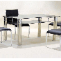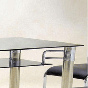 - Rectangular dining table with black glass top for modern aesthetics