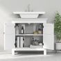 Extra space in the bathroom, easily with this HERON under sink storage cabinet. Thanks to the 'U' slot, this bathroom storage cabinet snugly fits around wall-mounted sinks. Features two shelves, with three-level adjustable shelf for flexible storage. Our under sink unit completes with handy magnetic doors for easy access.