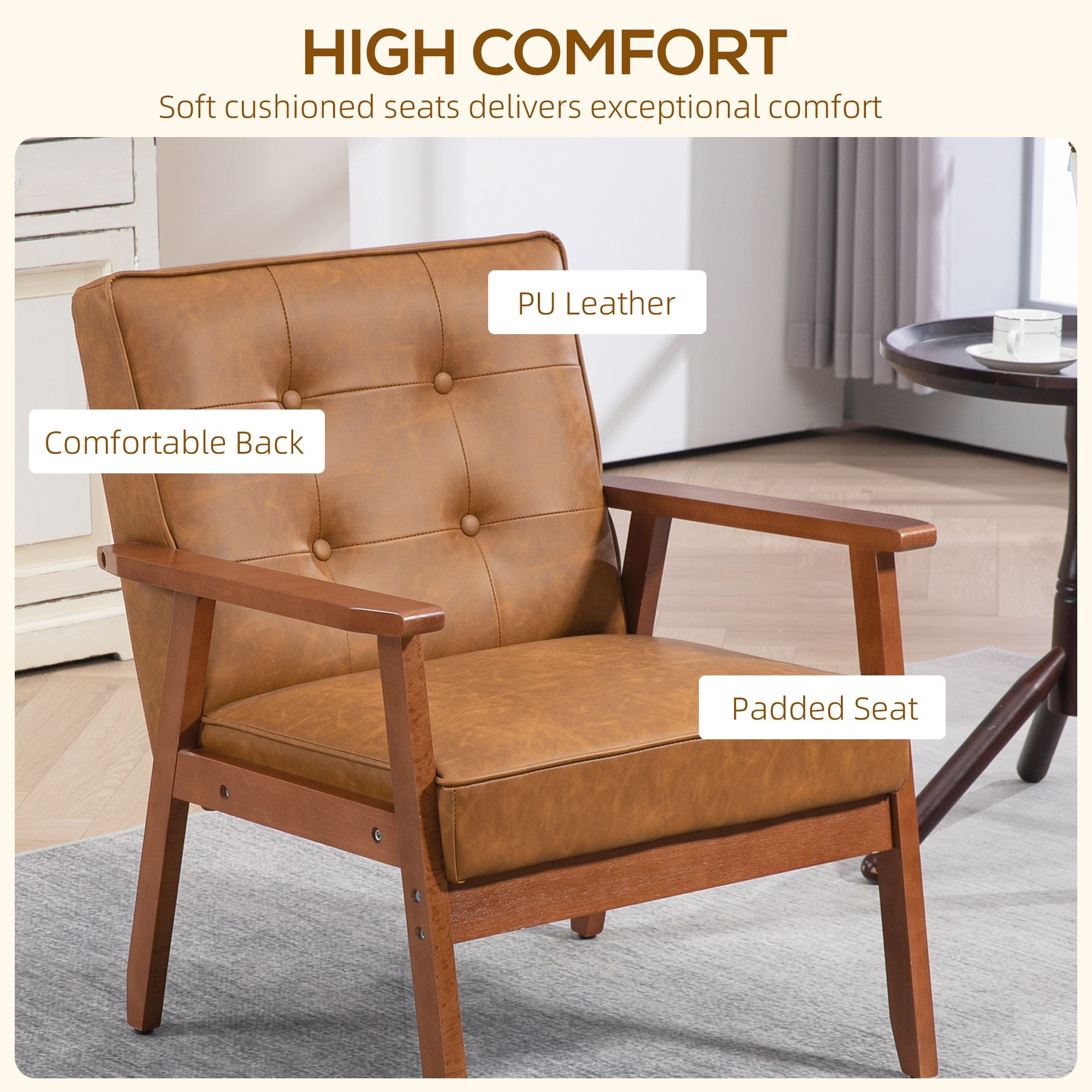 HERON 2 Pack Retro-Style Accent Chair, with Faux Leather Seat - Brown