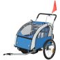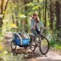 HERON 2 Seat Bike Trailer with 5 Point Harness, Baby Bike Stroller with Safety Flag, Reflectors, for 18+ Months, Blue
