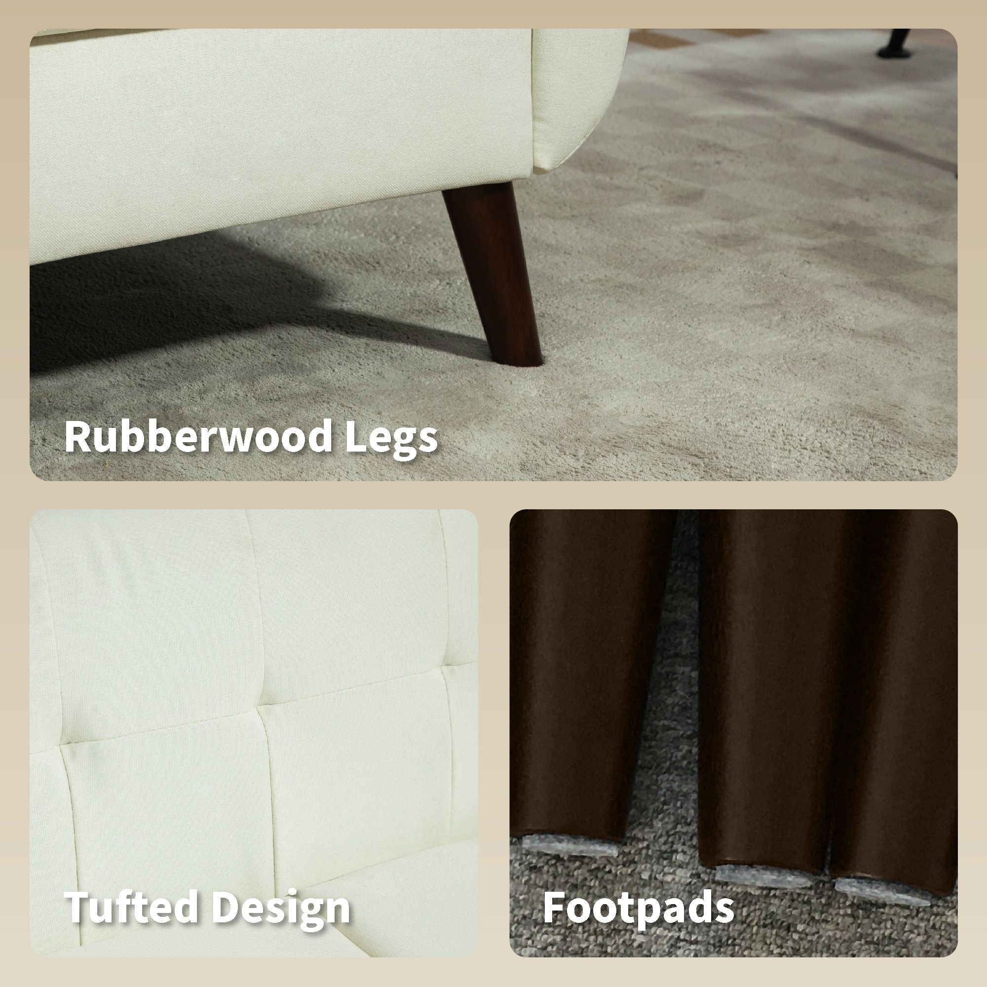 HERON 2 Seater Sofa, Modern Tufted Fabric Couch, Upholstered Loveseat with Wood Legs for Small Space, Living Room, Bedroom, Office, Cream White