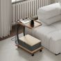 Discover the versatility of the HERON side table, a charming addition to any room. Its C-shaped design slides easily under your sofa or bed, making it an optimal small coffee table or sofa side table. Enjoy clutter-free convenience with two-tier storage and a tray top with curved edges to keep items secure. Plus, manoeuvre this end table effortlessly with four wheels, two equipped with brakes.