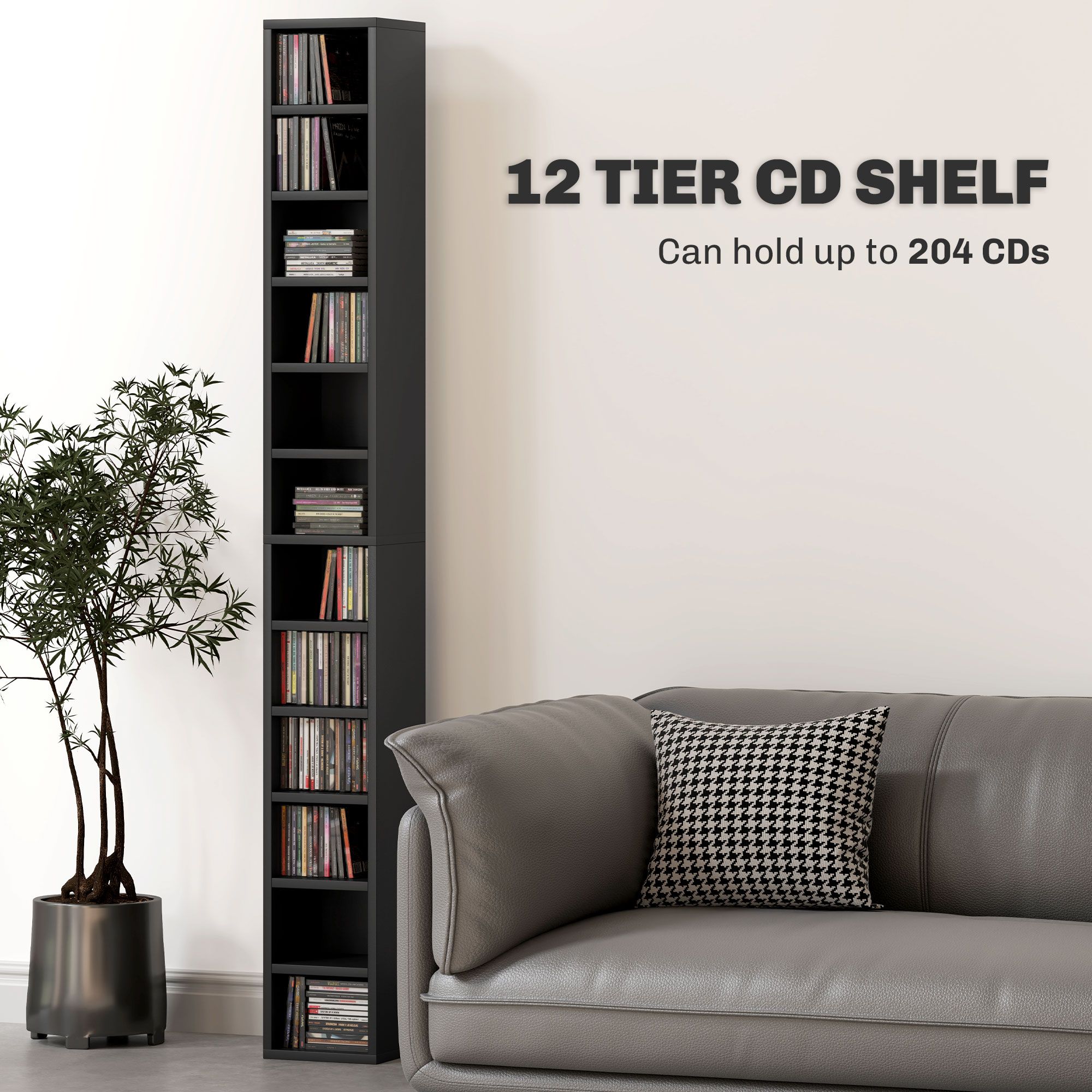 Keep your CD and media collection organised, thanks to this HERON CD tower. This 12-tier CD rack holds up to 204 CDs/DVDs, so there's plenty of space for both you and the family. The tall and slim shape makes this a space-saving piece. This media and DVD storage tower comes complete with anti-tipping design to safely fix to a wall.