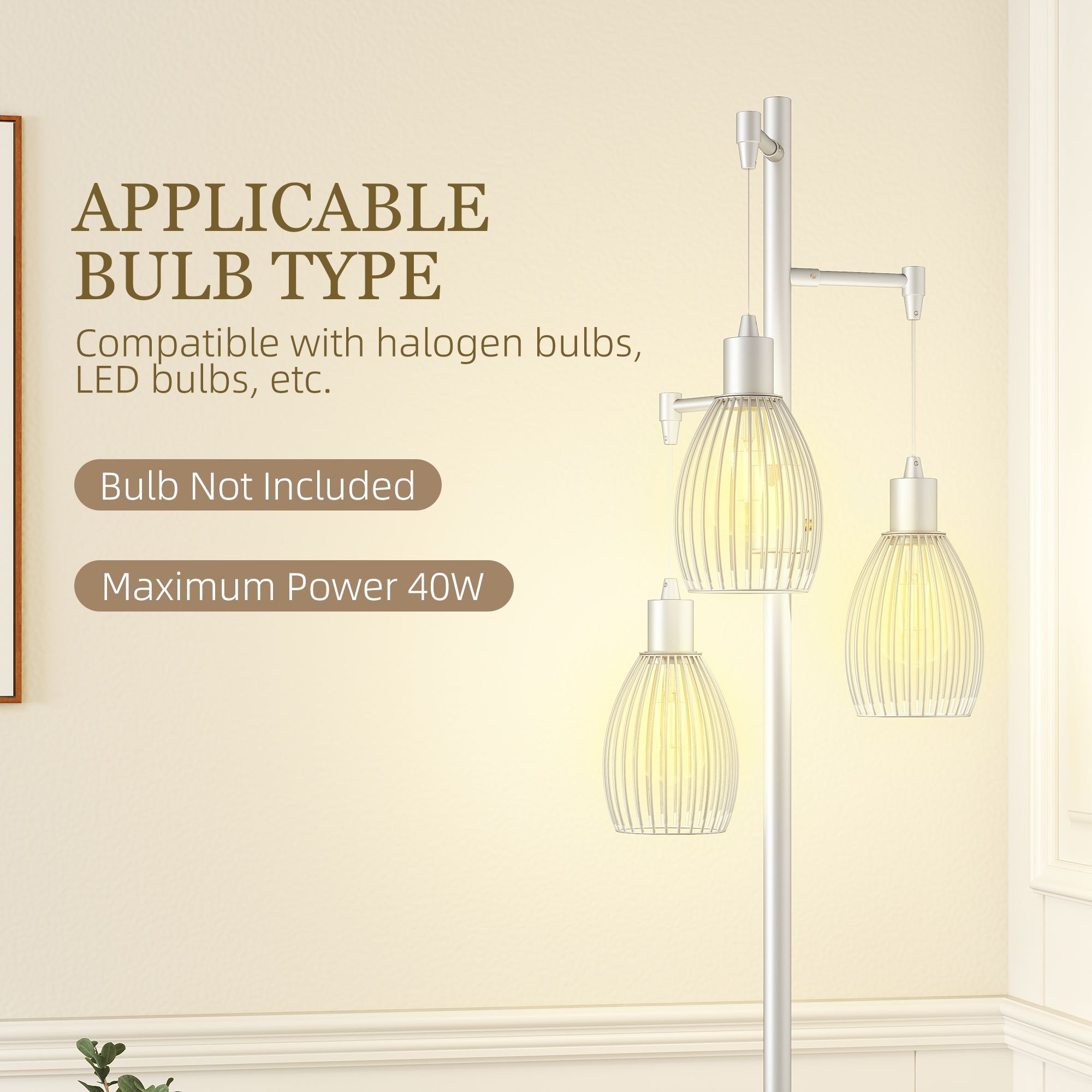 HERON 3 Light Floor Lamp Industrial Dimmable Standing Lamp Silver Tone