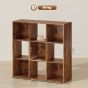 HERON 3-Tier 9 Cube Storage Unit Bookcase with Shelves - Rustic Brown