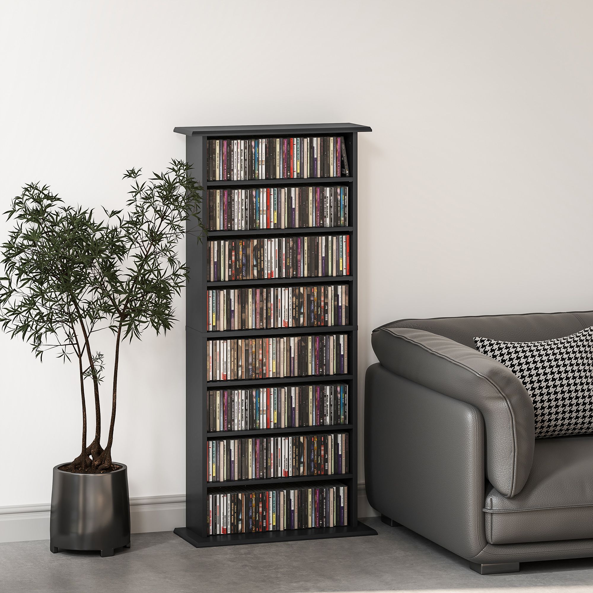 This HERON DVD rack showcases 8 shelves, with 6 adjustable shelves: room for up to 360 CDs, 185 DVDs or 185 Blu-rays. Made from particle board, the CD shelf's structure is reliable and is made to be used every day. Coming with anti-tipping straps to fix to a wall, so our HERON DVD shelf doesn't fall forwards and cause damage.