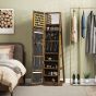 HERON 360degree Swivel Jewellery Cabinet, Mirror Armoire, Full Length Mirror, Lockable Jewellery Organiser with Built-In Small Mirror, Rustic Brown