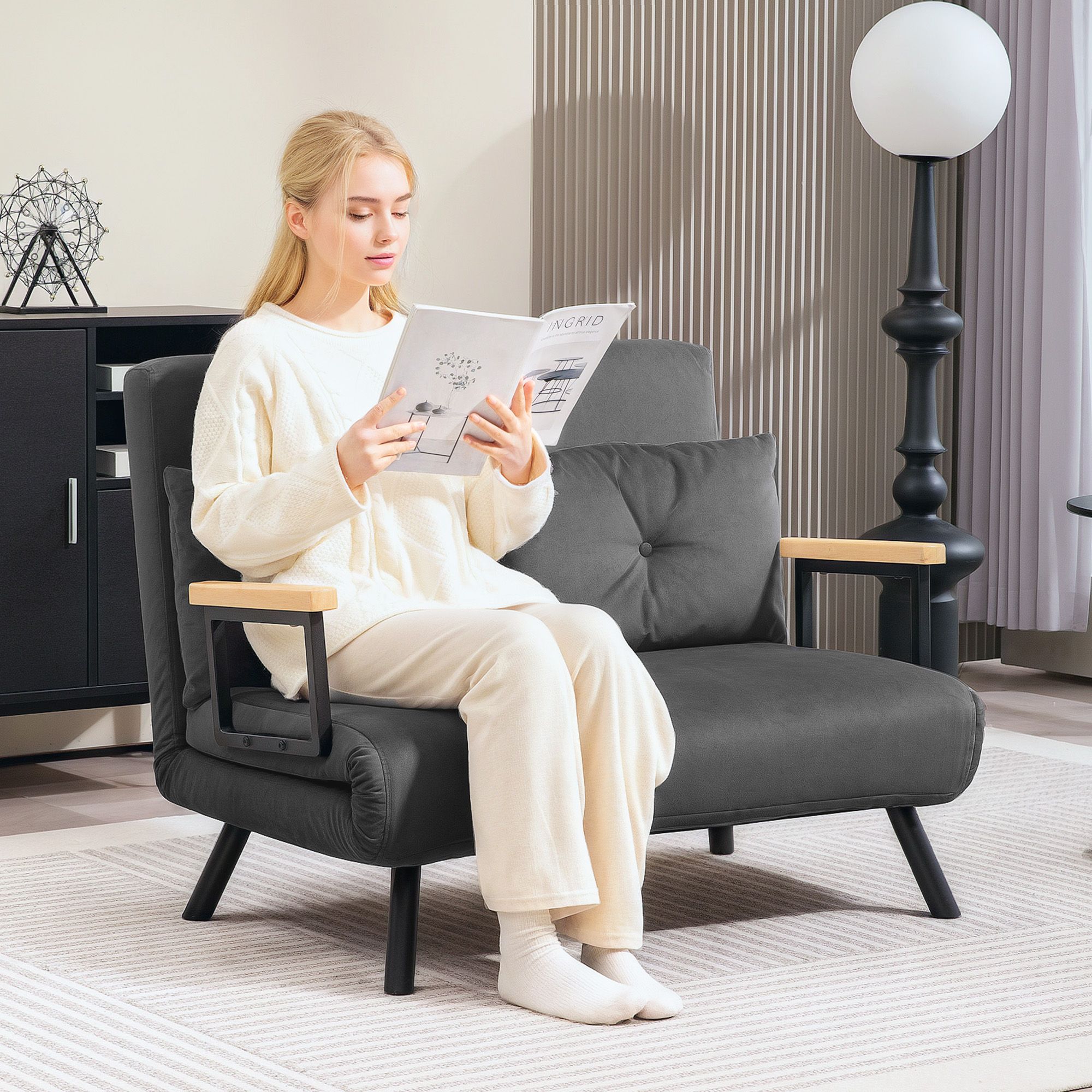 HERON 4-in-1 Velvet-Feel Double Sofa Bed, with Pillows - Dark Grey