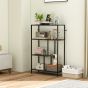 Discover the charm of our bookshelf from HERON, where industrial style meets unique asymmetry. Its sleek black frame and rustic wood finish shelves making it a stylish yet functional accent for your home. Enjoy lots of four-tier storage for your books, plants and treasures, all while ensuring stability with its robust construction and smooth, scratch-resistant surface. The HERON metal shelving unit is great for any room needing a stylish organisation boost.
