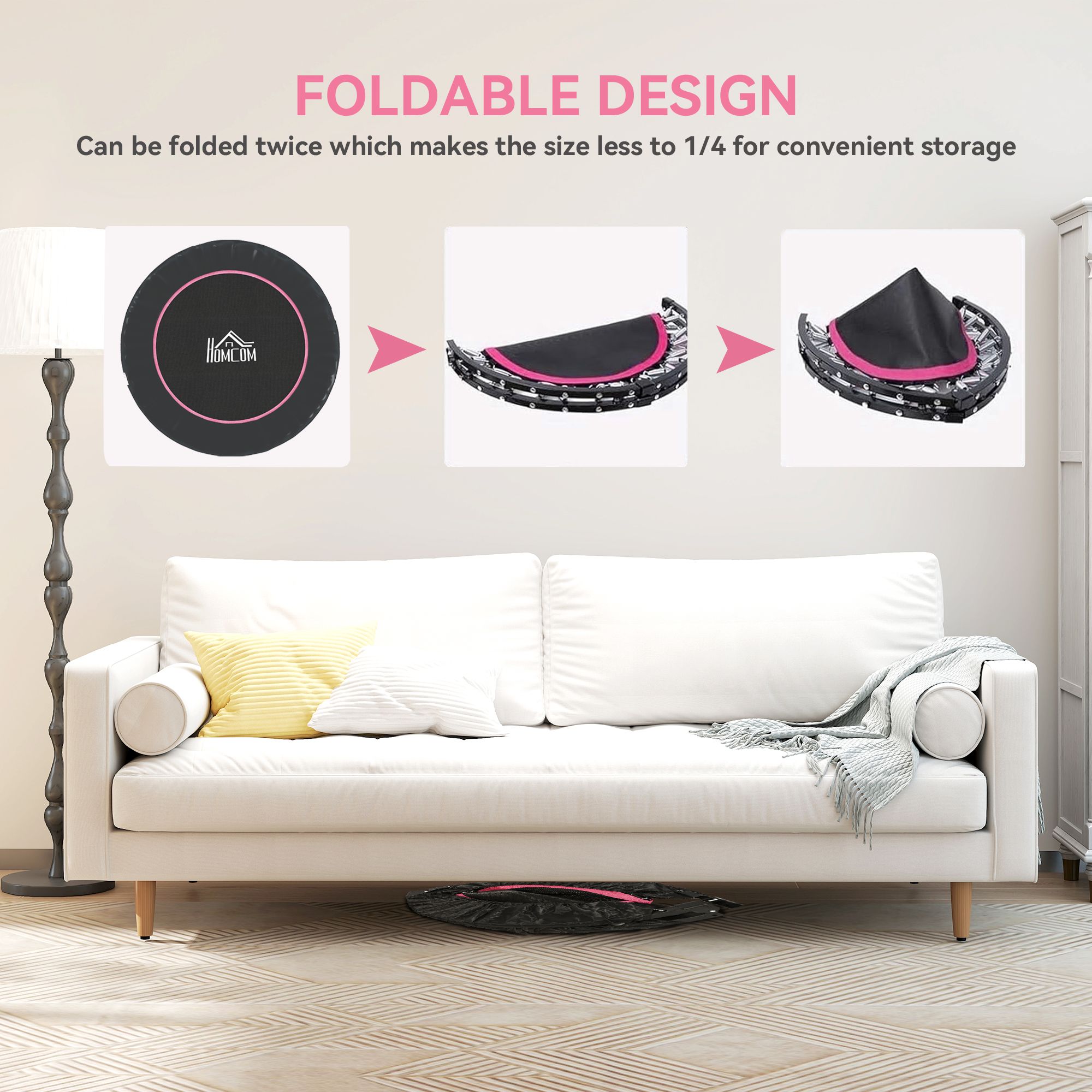 HERON 45-Inch Foldable Mini Fitness Trampoline, with Adjustable Foam Handle, Pink