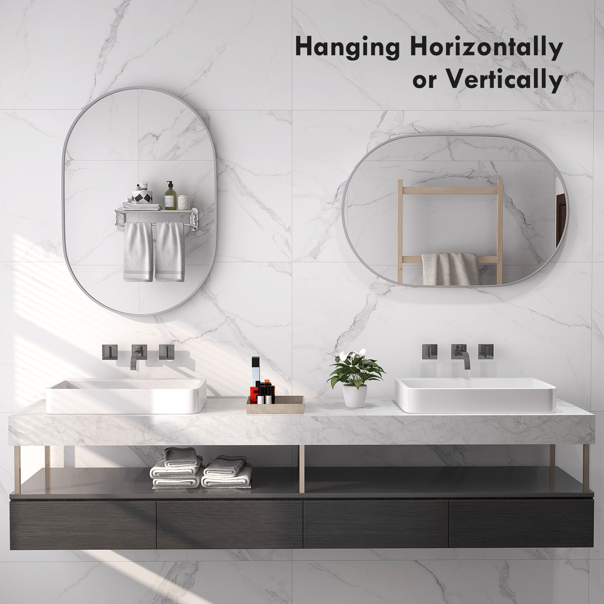 HERON 60cm Round Tempered Glass Bathroom Mirror Silver Tone