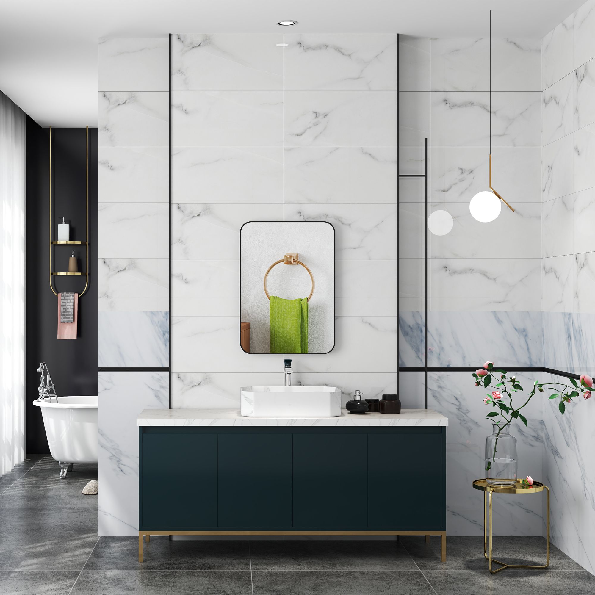 The HERON bathroom mirror is an essential for every home. Hang this 70 x 50cm mirror either vertically or horizontally - hang it your way. The powder coated metal frame is strong, in a curved corner shape for a soft, welcoming look. HD glass means a clear reflection, finished with shatter-resistant film on the back for safety.