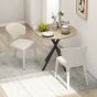 Discover the charm of compact dining with the HERON dining room table. Great for cosy spaces, this small kitchen table comfortably seats two to four, making it a versatile addition to any room. Featuring an white oak wood effect tabletop and sleek black legs that converge in the centre, it's not just a dinner table but a stylish statement for any setting.