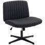 HERON Armless Office Chair No Wheels Linen Fabric Criss Cross Legged Wide Seat - Black
