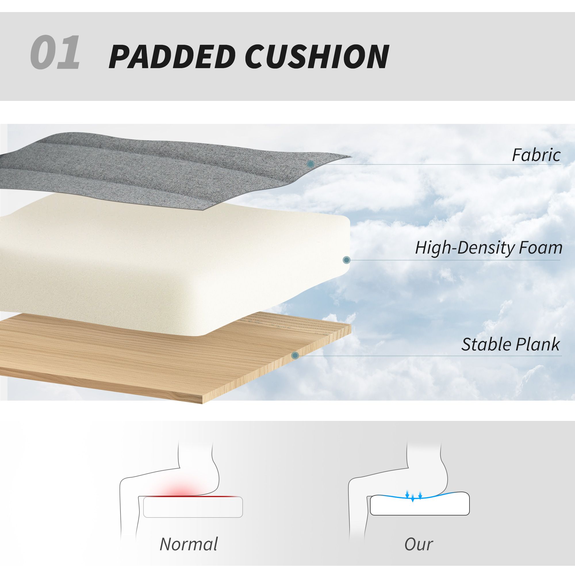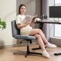 HERON Armless Office Chair No Wheels Linen Fabric Criss Cross Legged Wide Seat - Grey