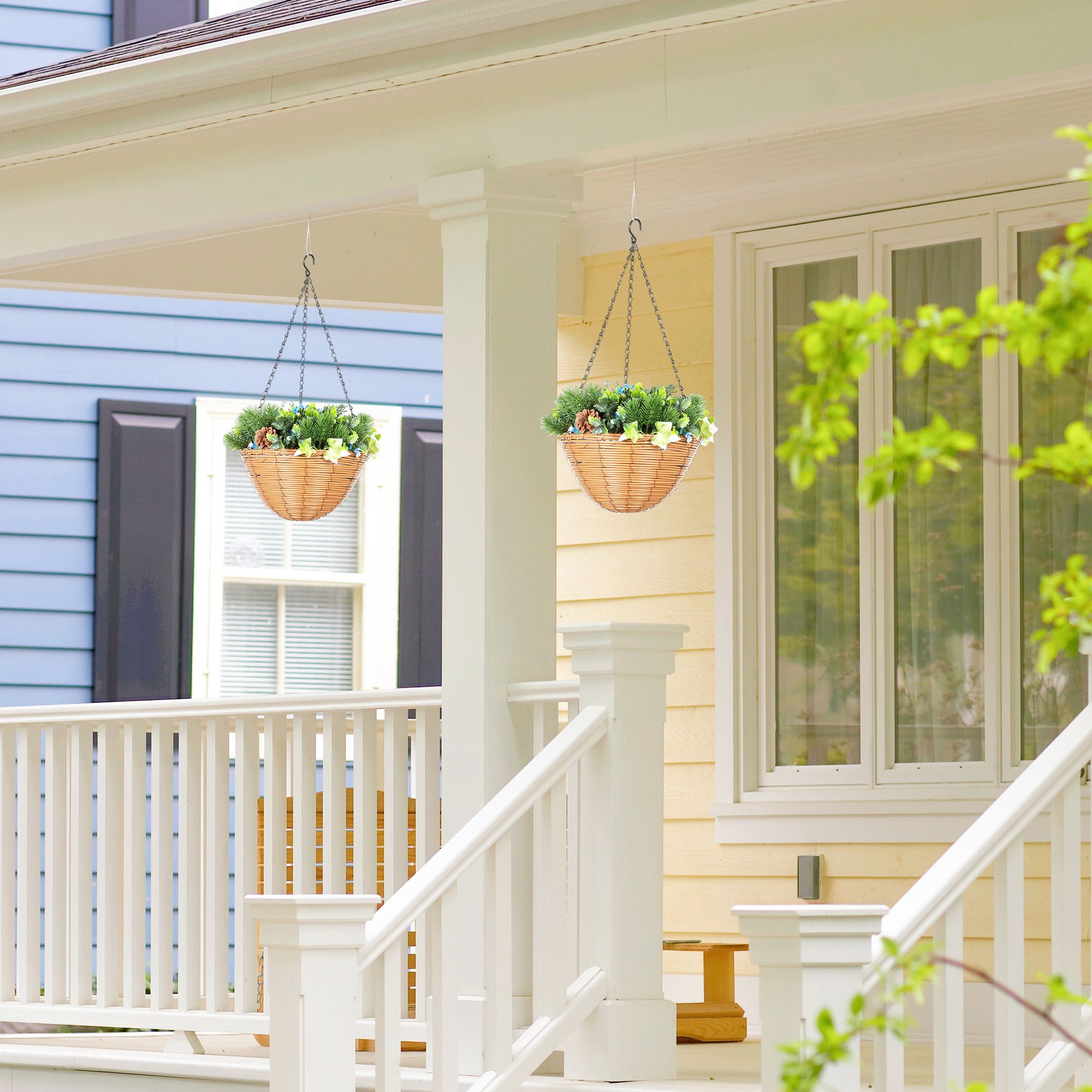 HERON Artificial Hanging Flowers Basket Set of 2 with PE Leaves - Green
