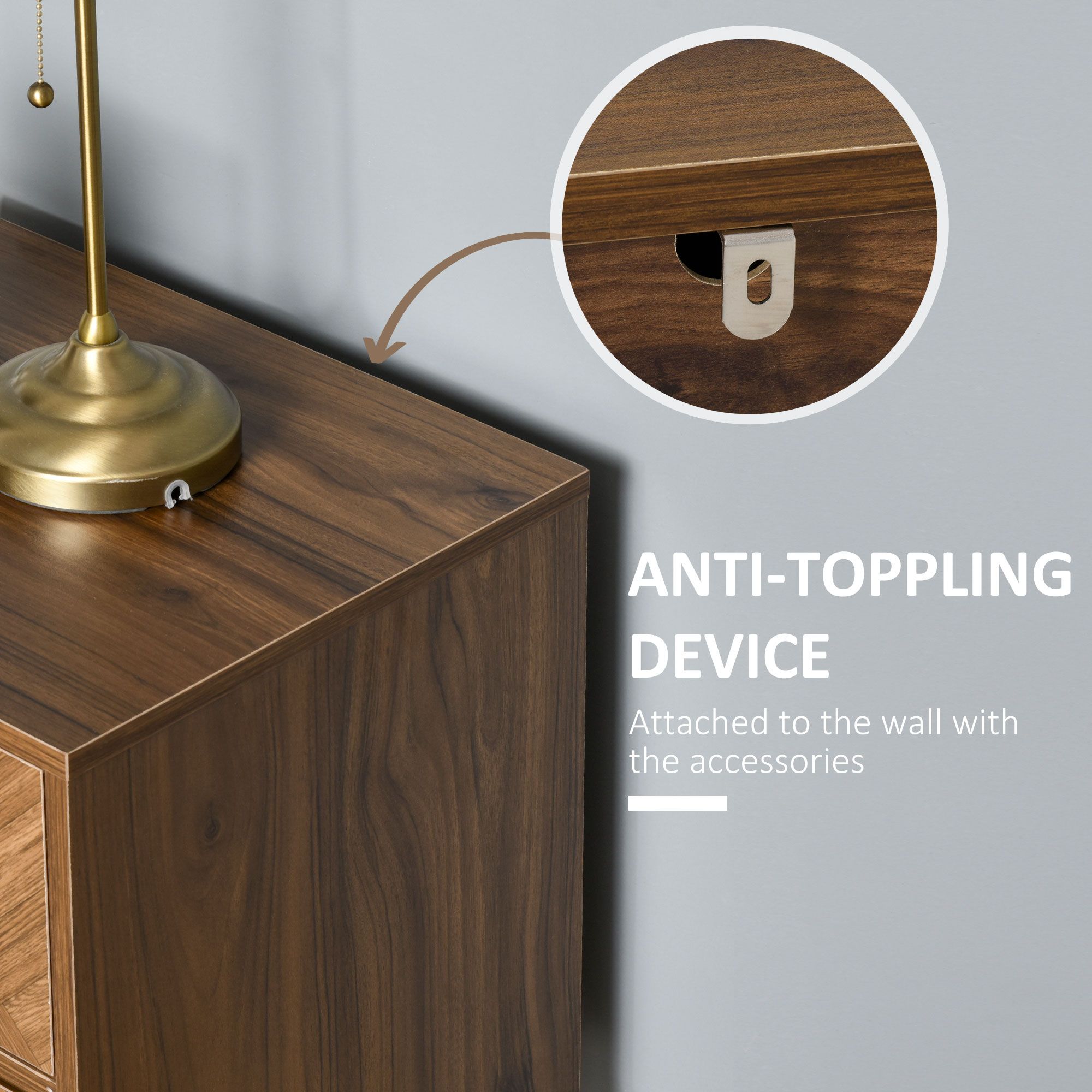 HERON Bedside Table Set of 2 2 Drawers Herringbone Pattern Metal Legs - Walnut Brown