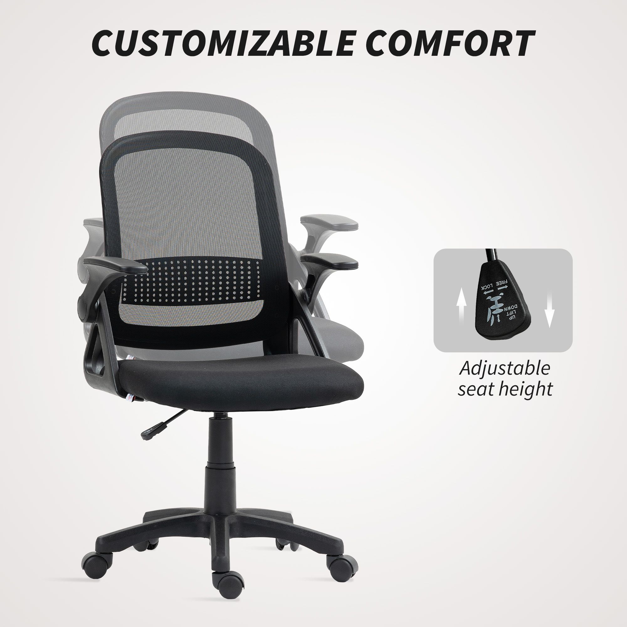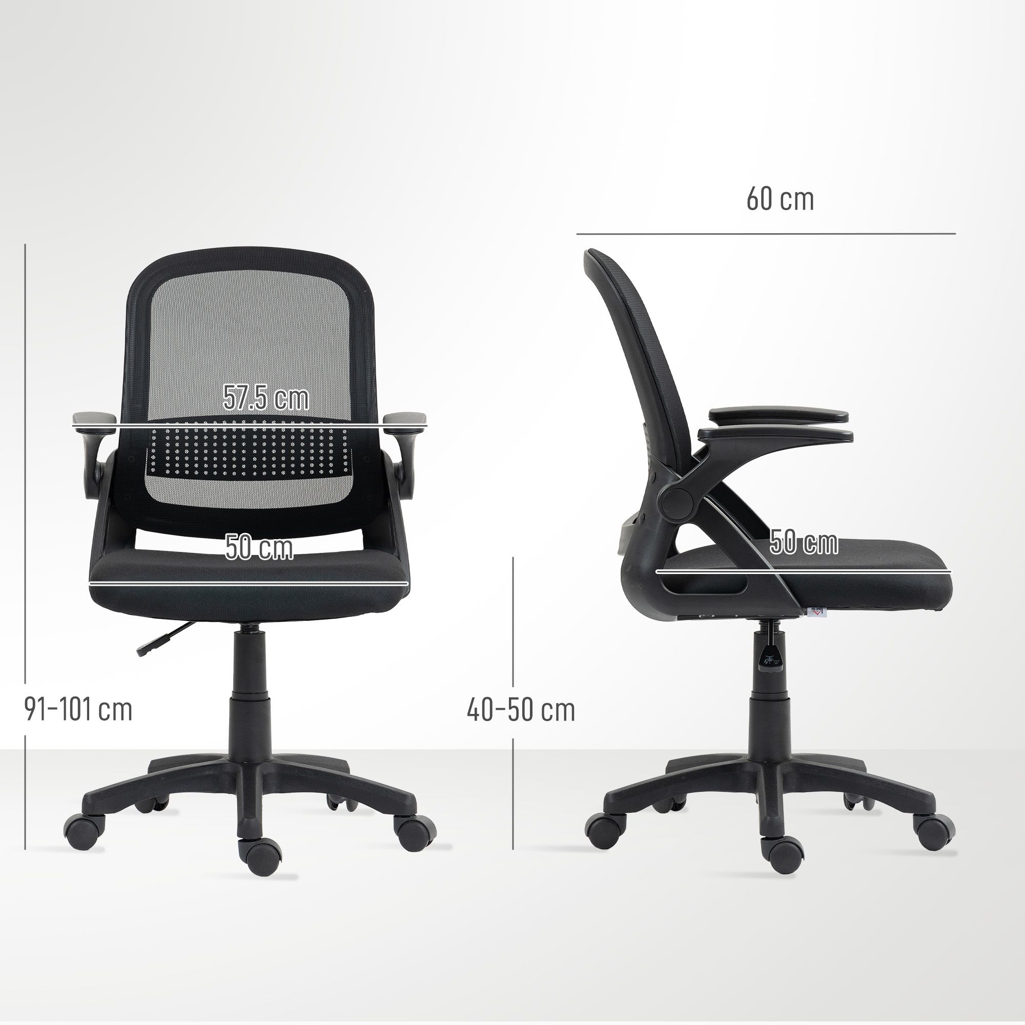 HERON Breathable Mesh Office Chair Ergonomic Swivel Flip up Armrests Lumbar - Black