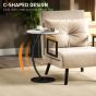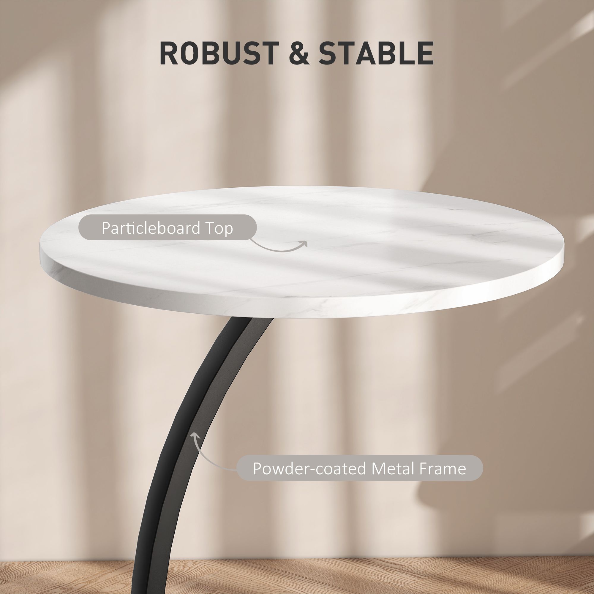 HERON C Shaped Side Table Round Bedside Table with Marble Effect Top White