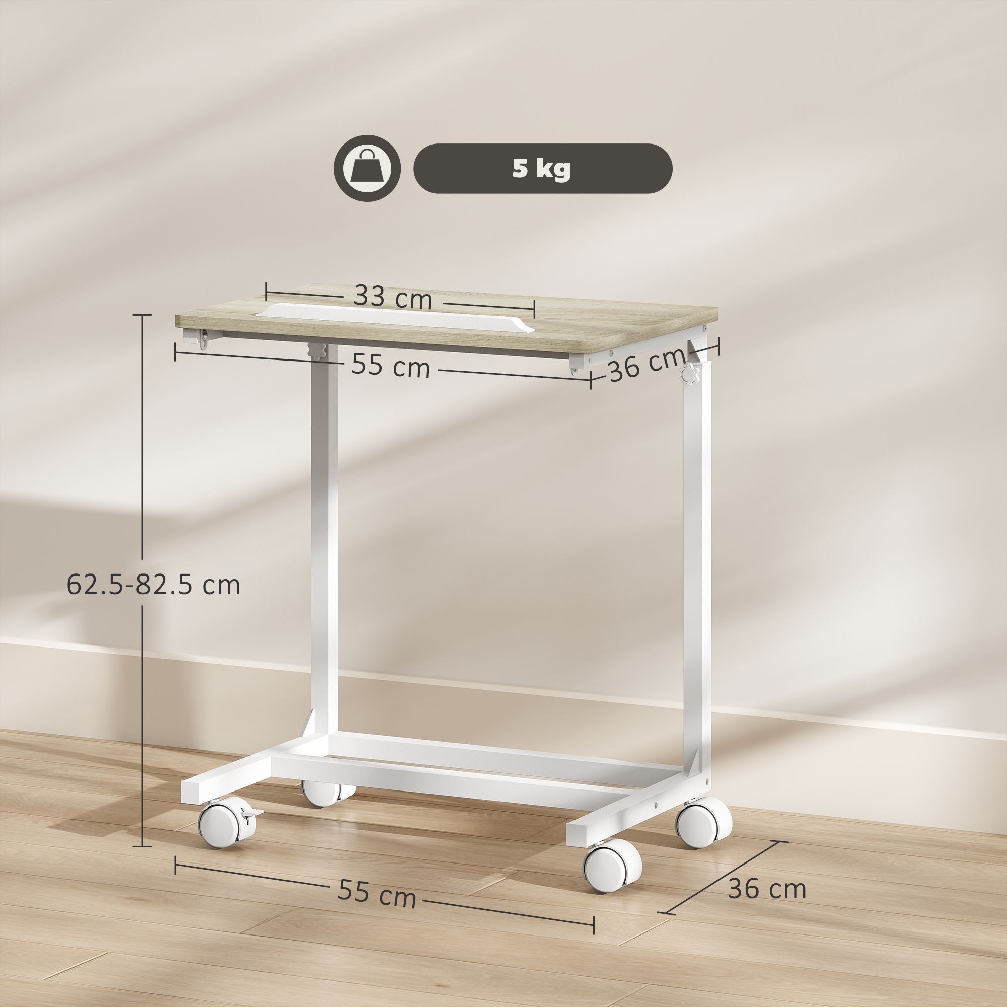 HERON C Shaped Sofa Side Table Height Adjustable Overbed Table Oak and White