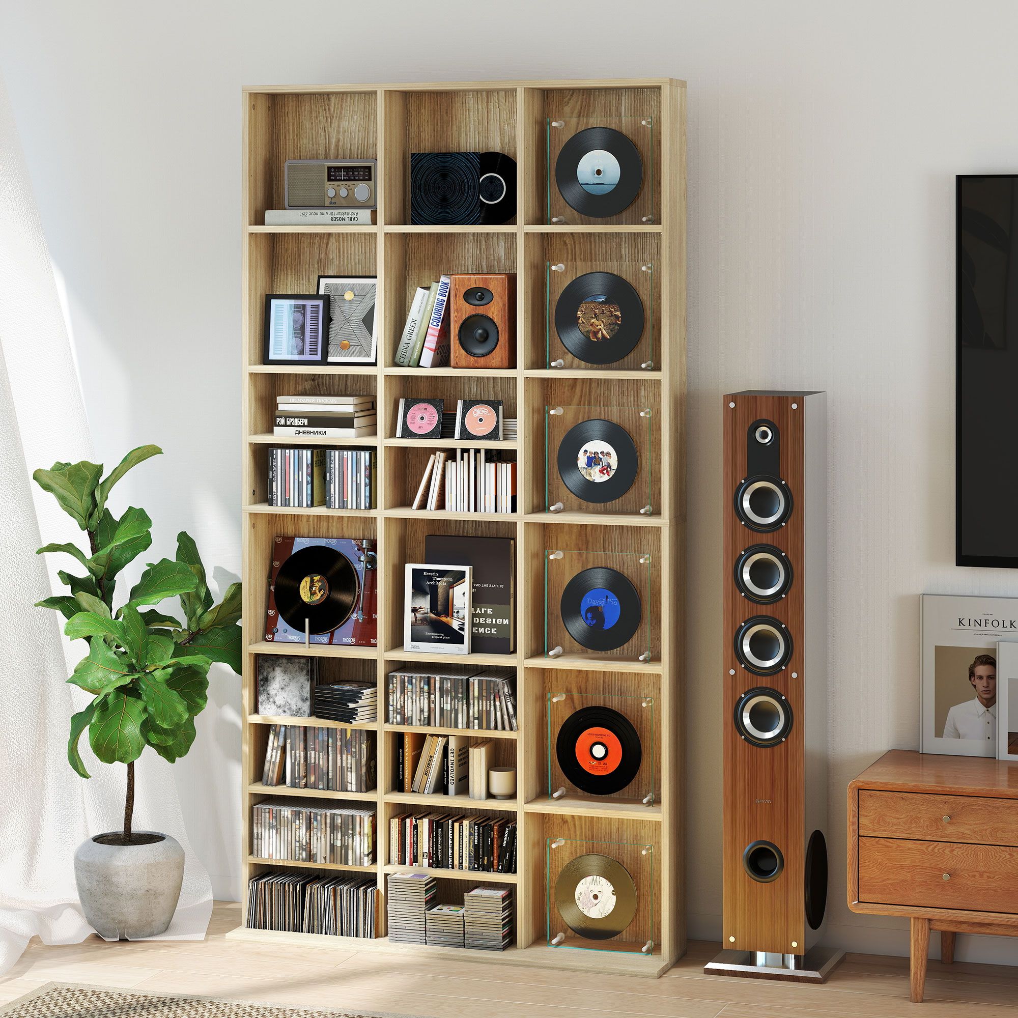 HERON CD Storage Unit Adjustable Shelves 102x195cm - Oak Tone
