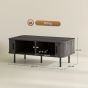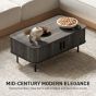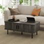 HERON Coffee Table with Storage Slatted Tambour Sliding Doors Foot Pads - Grey Wood Effect