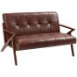 HERON Compact 2 Seater Sofa Vintage Tufted Loveseat Solid Wood Legs - Brown