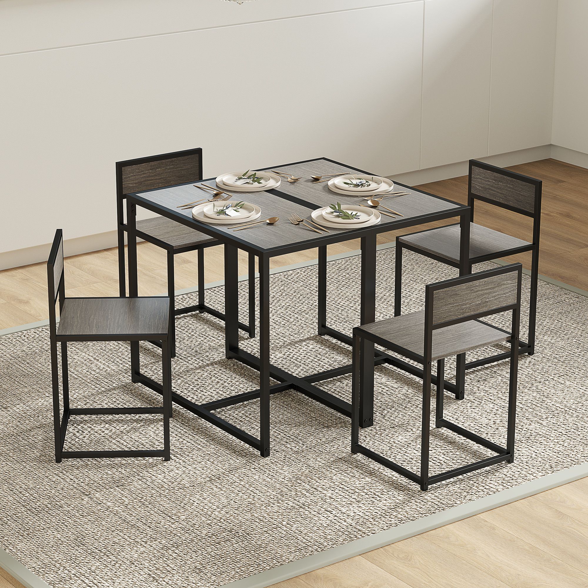 HERON Dining Table and Chairs Set 2, Dining Room Sets, Grey Wood-Effect