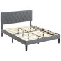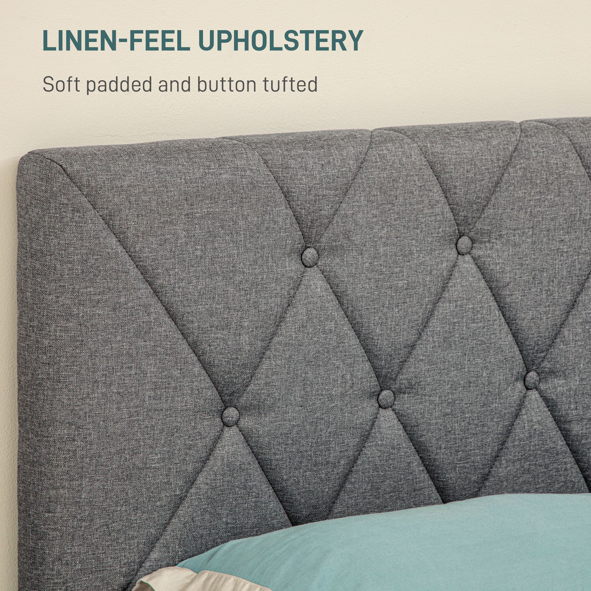 HERON Double Bed Frame with 5-Level Adjustable Linen Upholstered Headboard, Wooden Slats Mattress Foundation, No Box Spring Needed, Grey