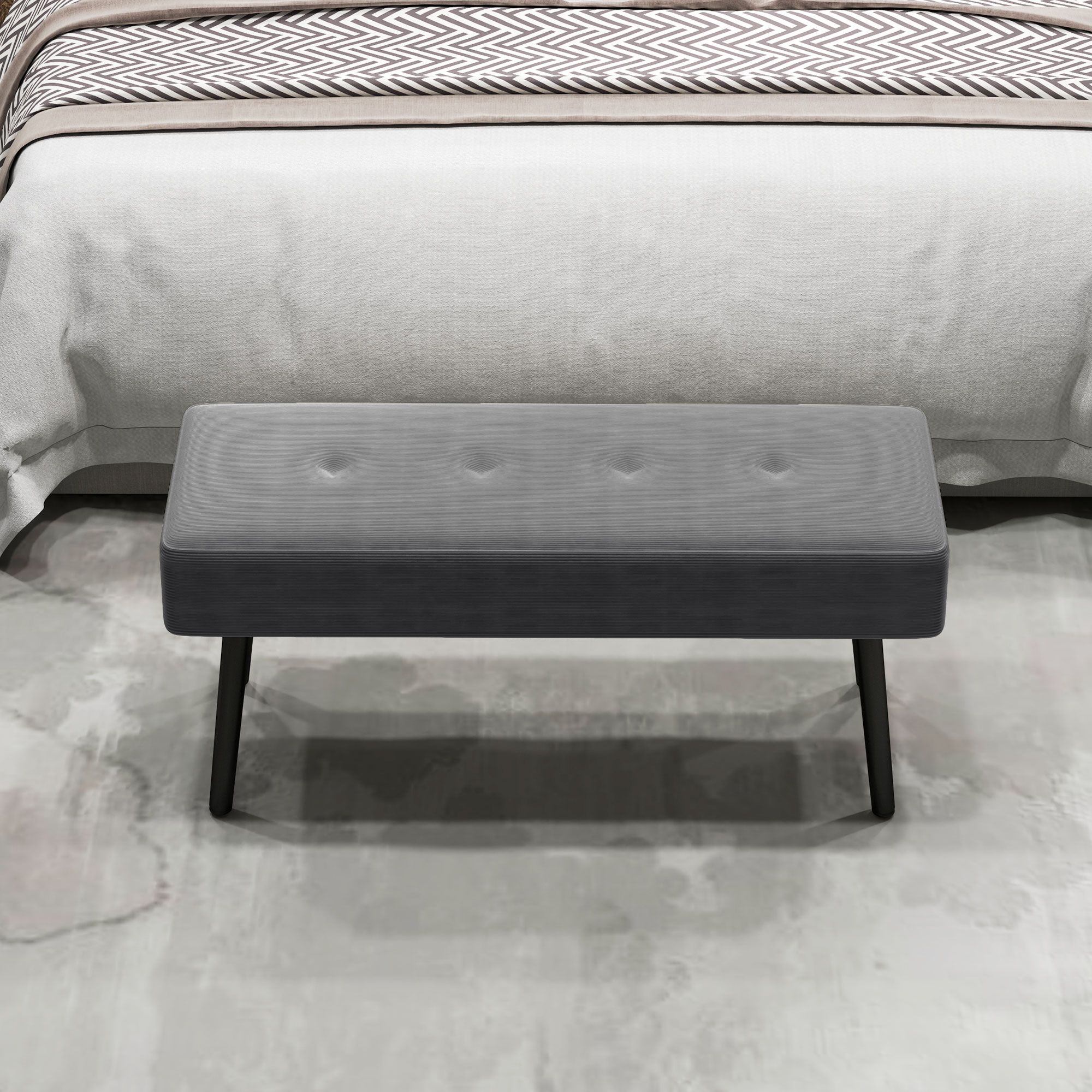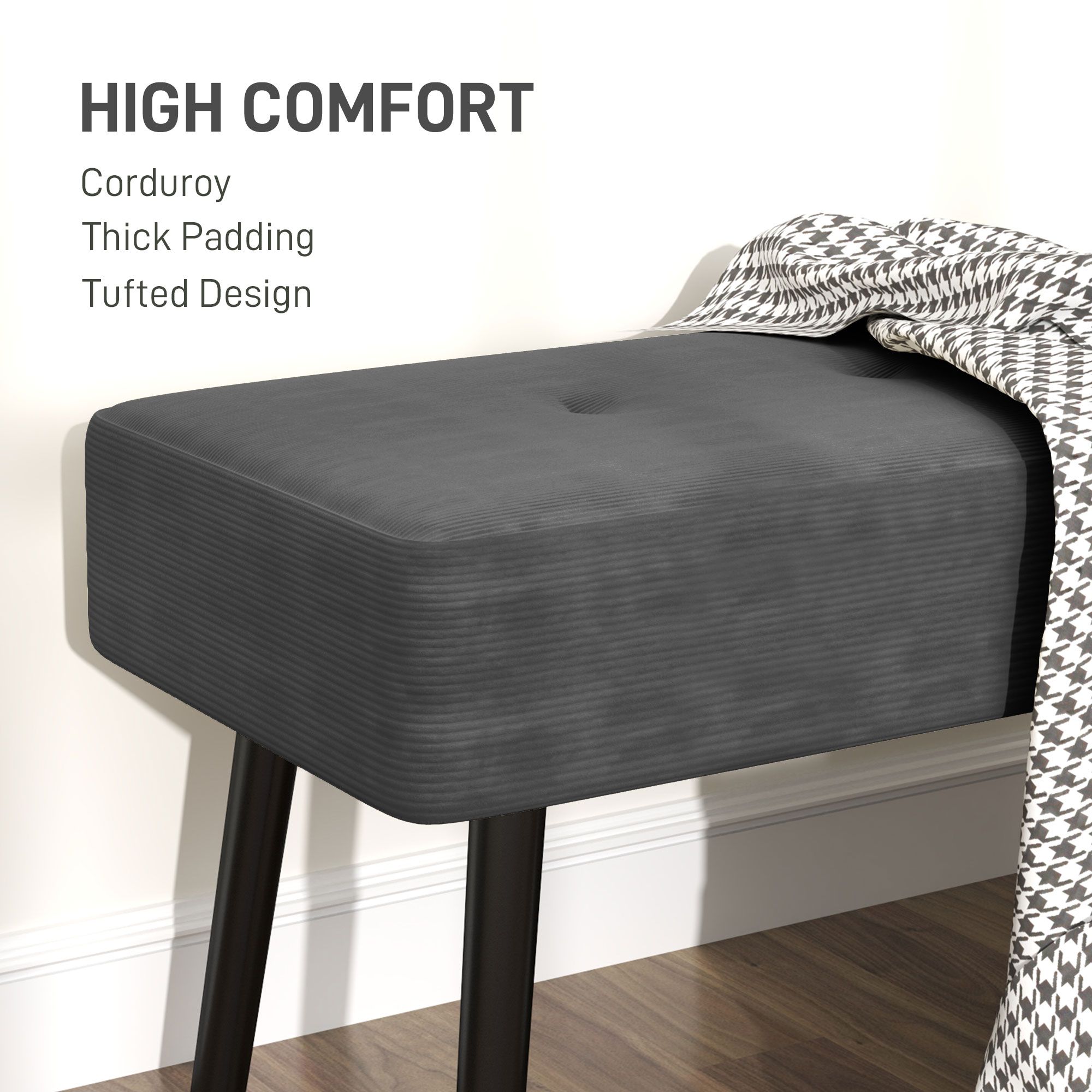 HERON End of Bed Bench, Corduroy Bedroom Bench with Thick Padding and Steel Legs, Tufted Window Seat for Entryway, Living Room, Grey