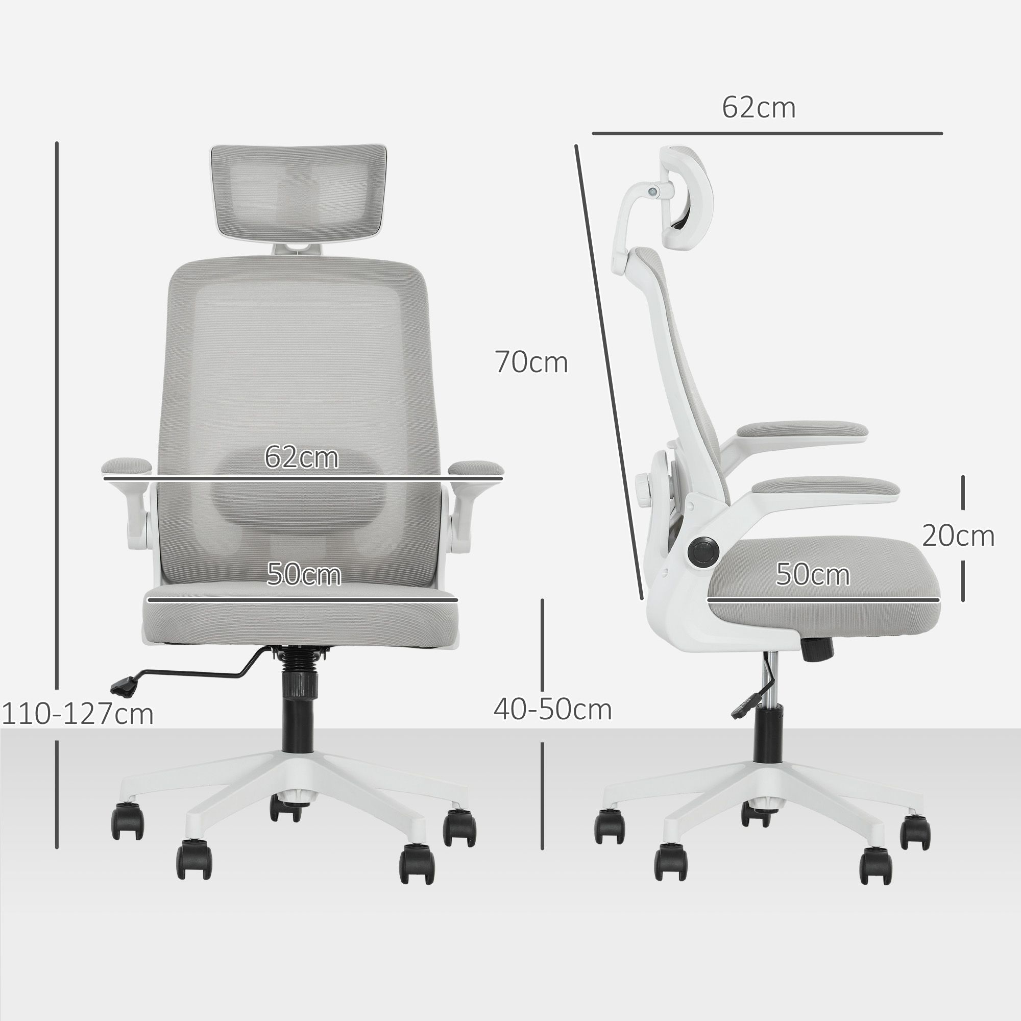 HERON Executive Office Chair, Ergonomic Mesh High Back Desk Chair with Flip-up Armrest, Adjustable Lumbar Support, Grey