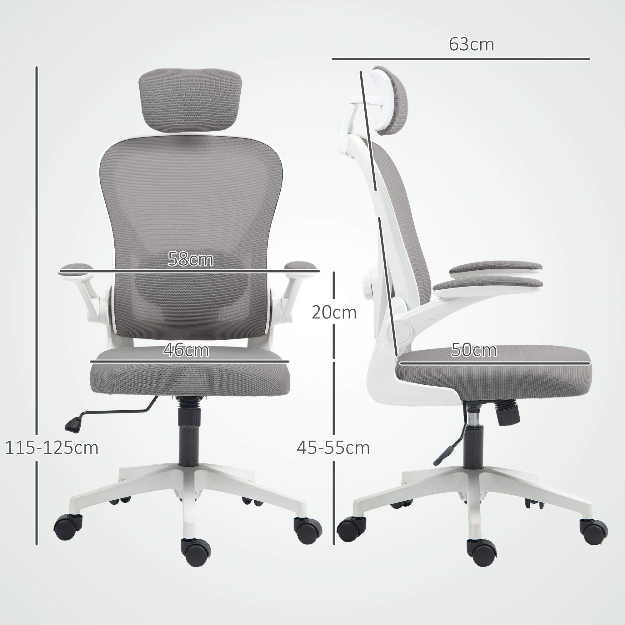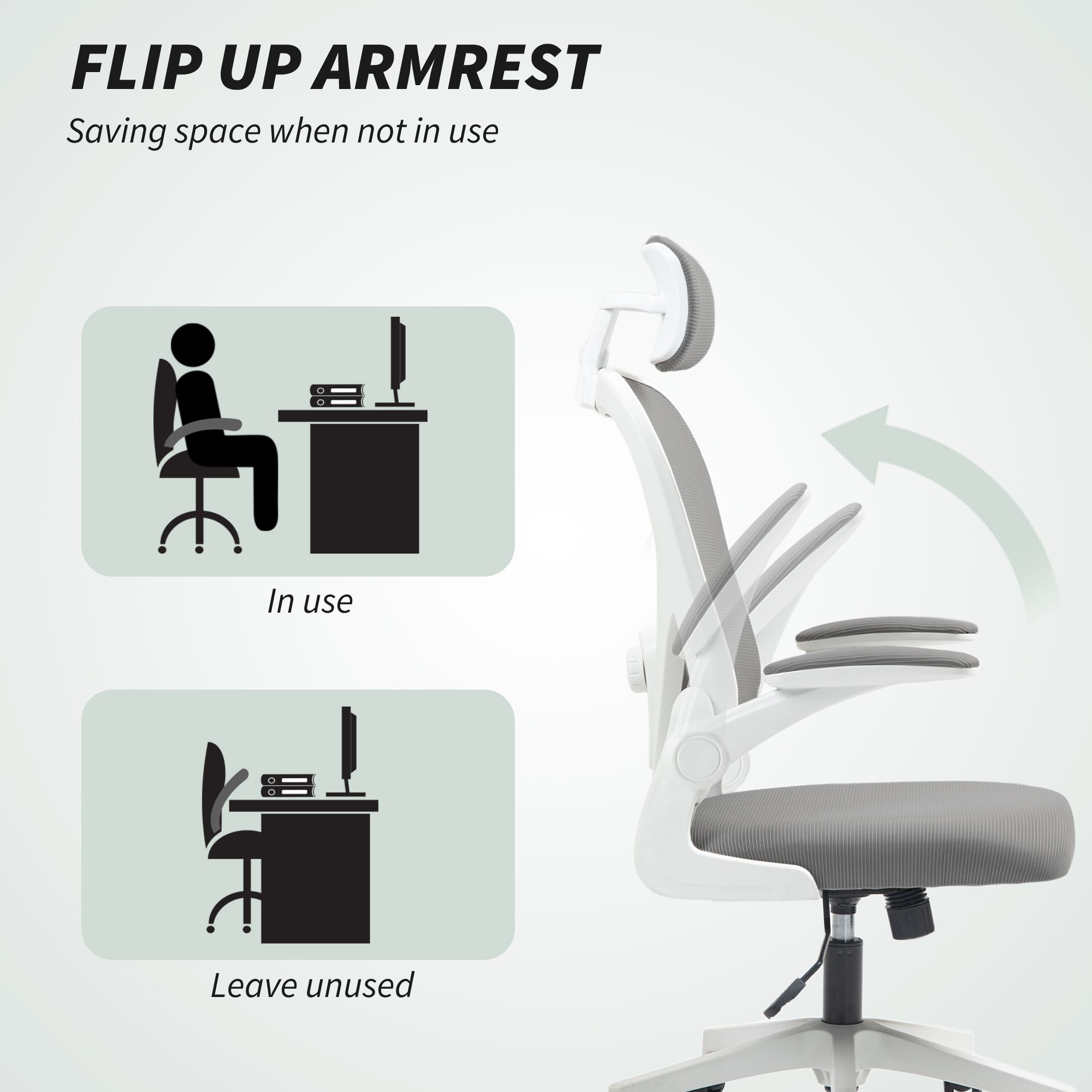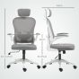 HERON Executive Office Chair, Ergonomic Mesh High Back Desk Chair with Flip-up Armrest, Rotatable Headrest, Grey