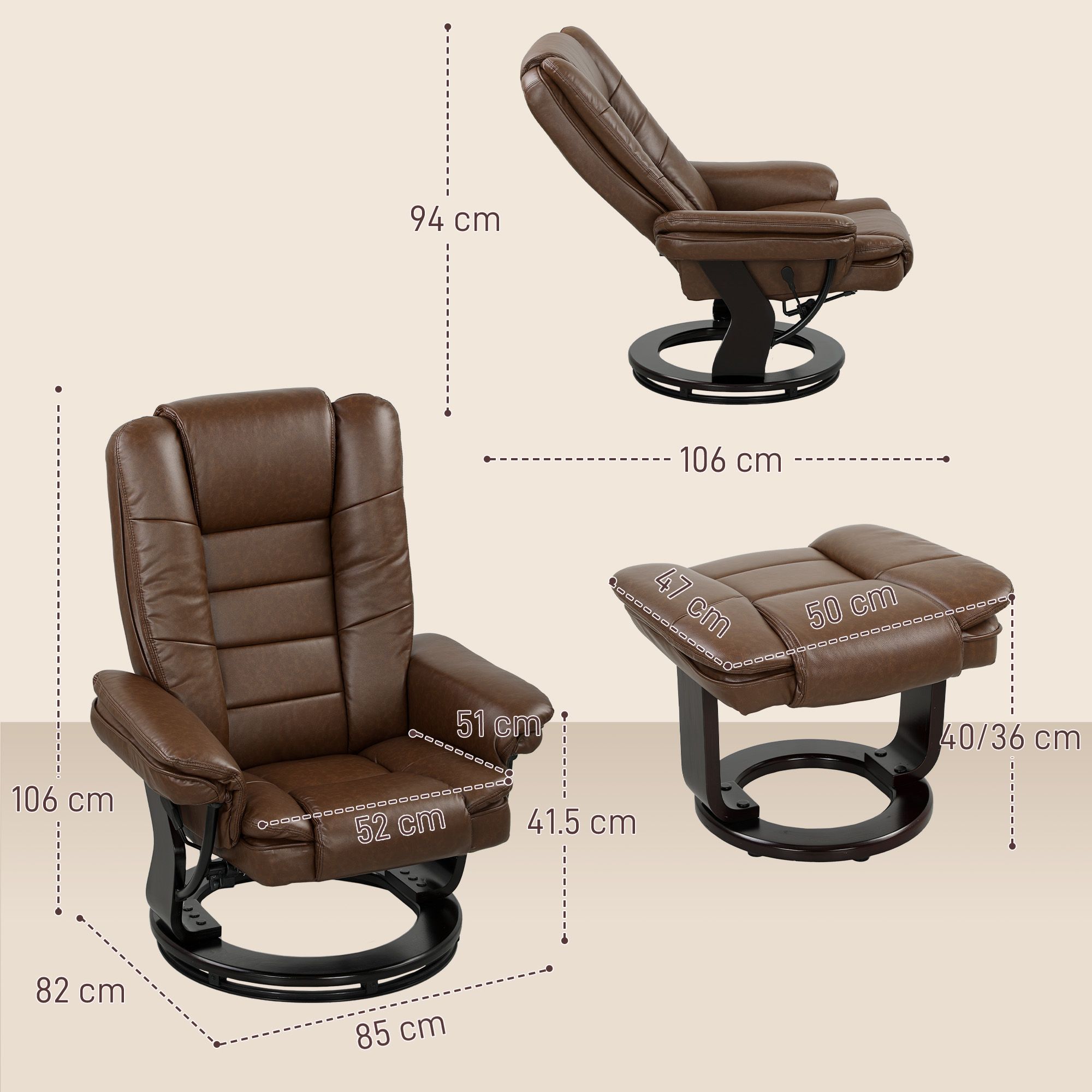HERON Faux Leather 135 Reclining Chair Footstool - Brown