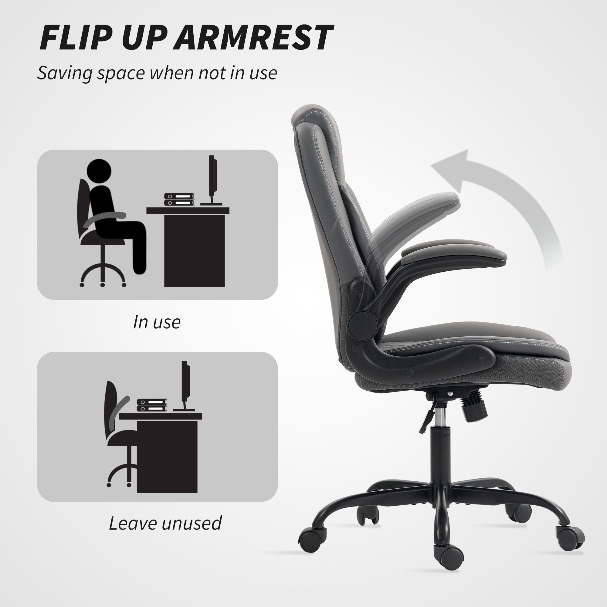 HERON Faux Leather Office Chair Flip Up Armrests - Charcoal Grey