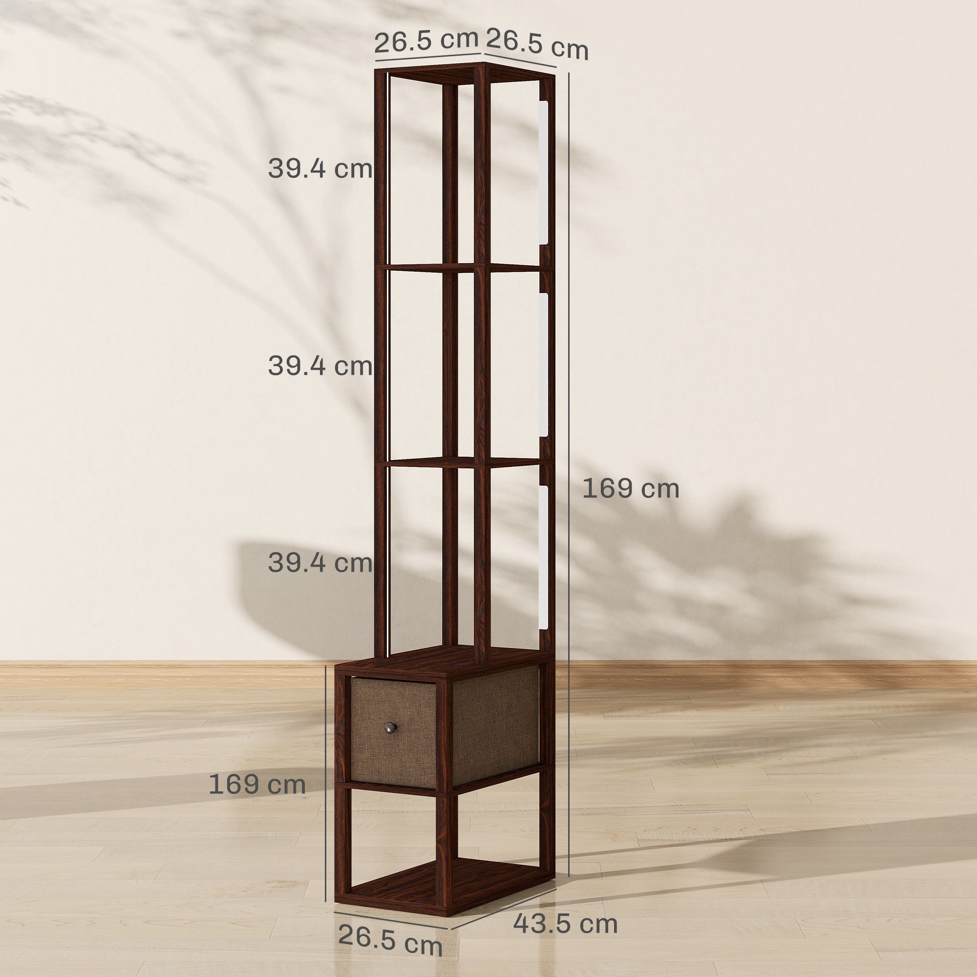 HERON Floor Lamp with Shelves LED Column Standing Lamp Fabric Drawer - Dark Brown