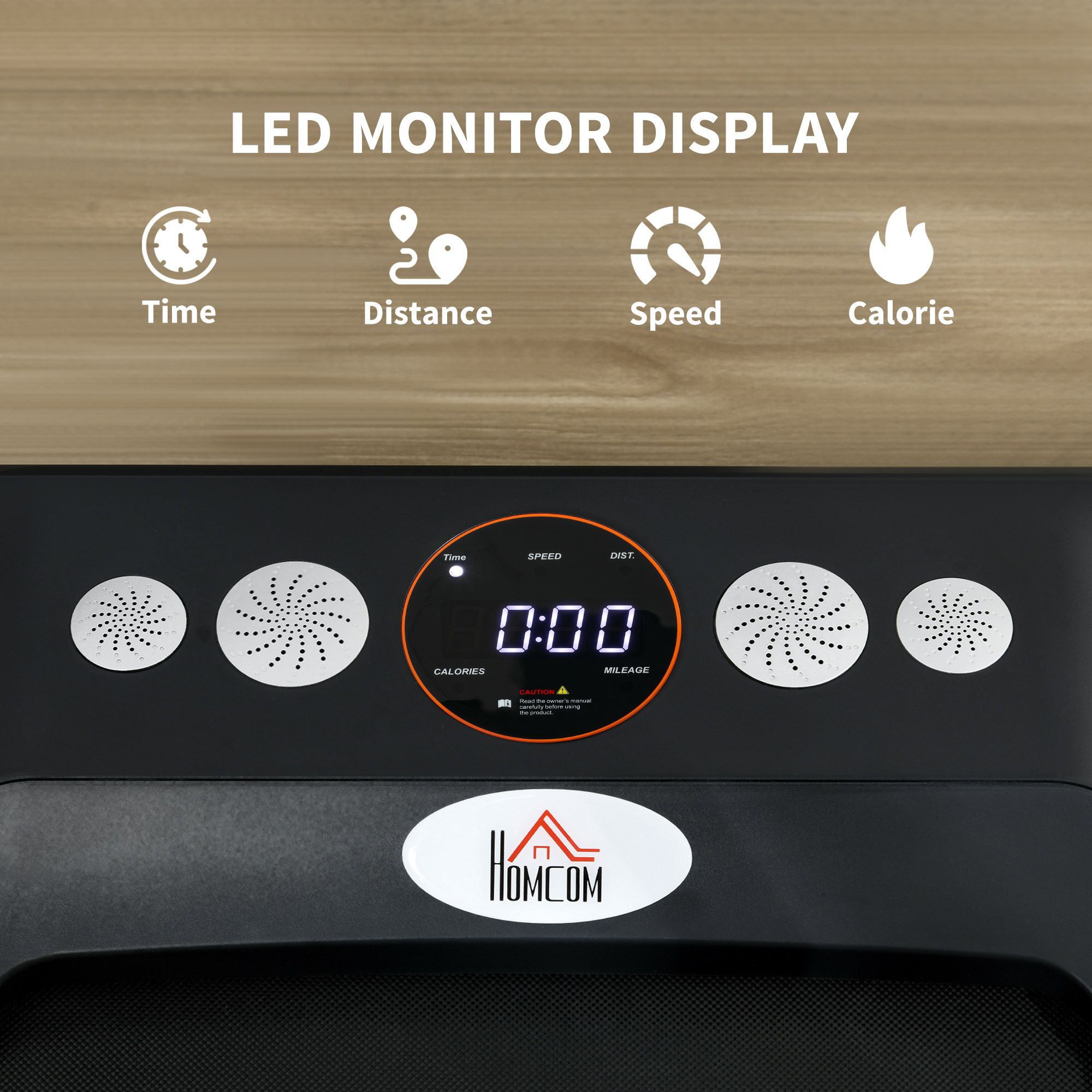 Boost your step count without leaving home with the HERON walking treadmill. The built-in LED screen helps you monitor time, speed, distance and calories, keeping you on track with your fitness goals. It features a non-slip running belt for safety and a safety key that allows for quick stops if necessary. With two wheels at the bottom, it's easily portable, making it convenient to move wherever you need. Enjoy an effective and safe workout right from the comfort of your own home!