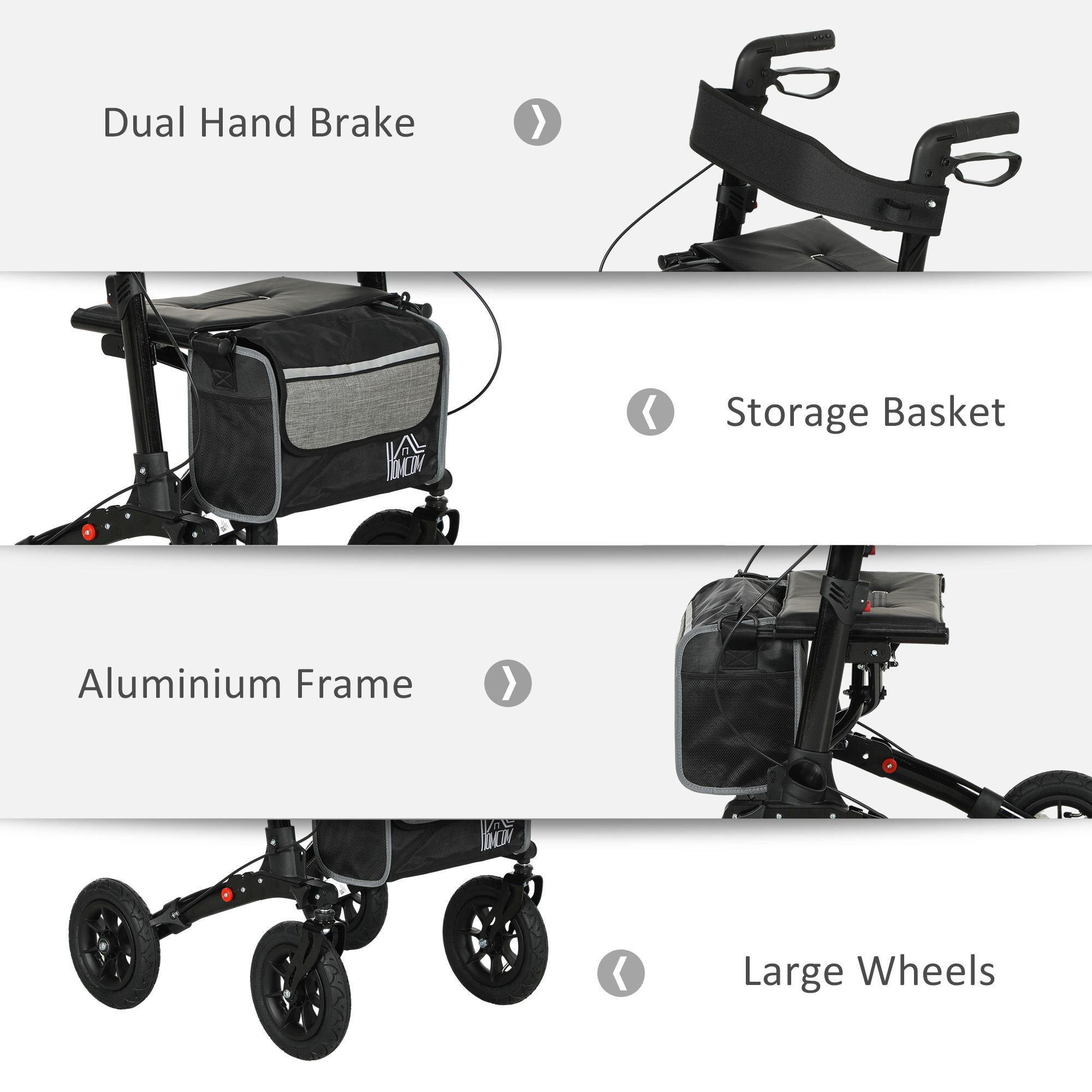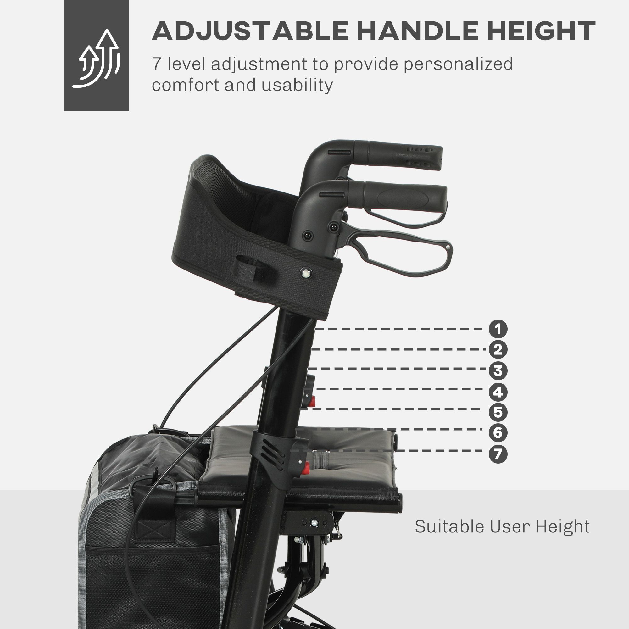 HERON Folding Rollator Walker with Padded Seat, Backrest, Lightweight Walking Frame with Storage Bag, Dual Brakes, All-terrain Wheels, Black