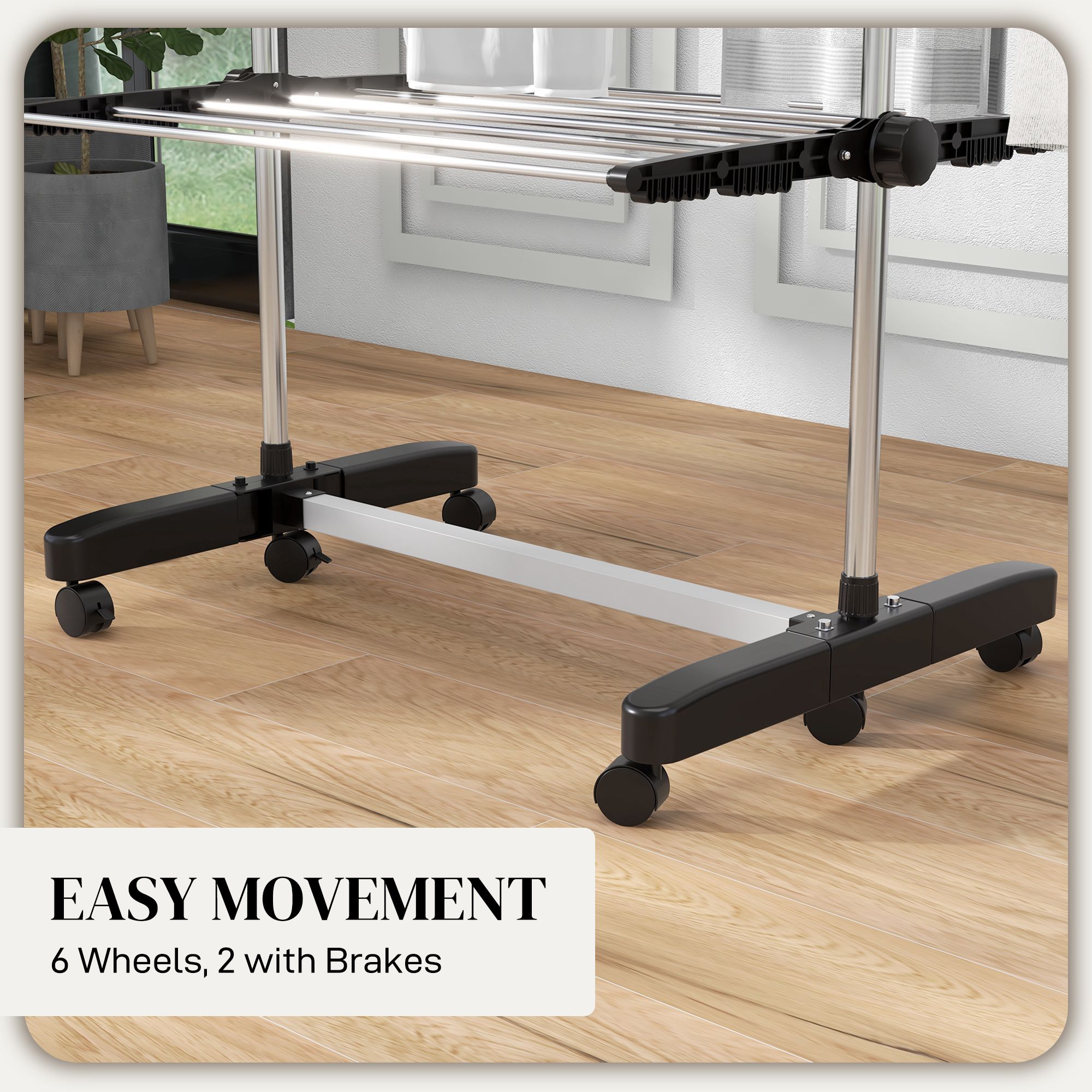 HERON Four-Shelf Collapsing Clothes Horse, With Side Arms and Wheels - Black