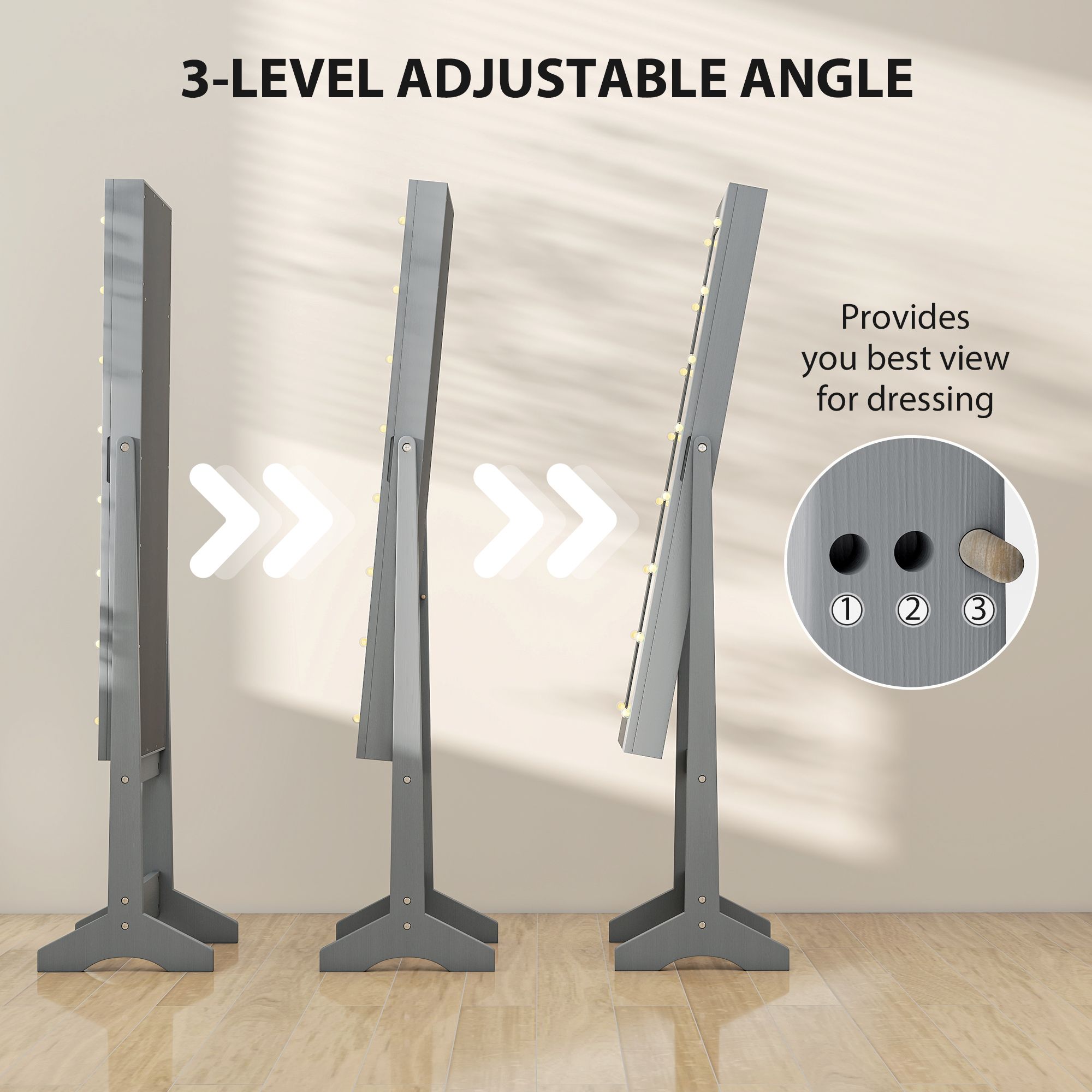 HERON Freestanding Mirror Jewelry Cabinet LED Lights Jewellery Organiser - Grey