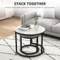 Double the character for your space, with this HERON nesting table set. It can be used separately or independently, throughout the living room, bedroom and office. Steel frames for a strong structure, with marble-effect tempered glass tabletops for a sleek touch. Let these two living room tables bring style and functionality to your space.