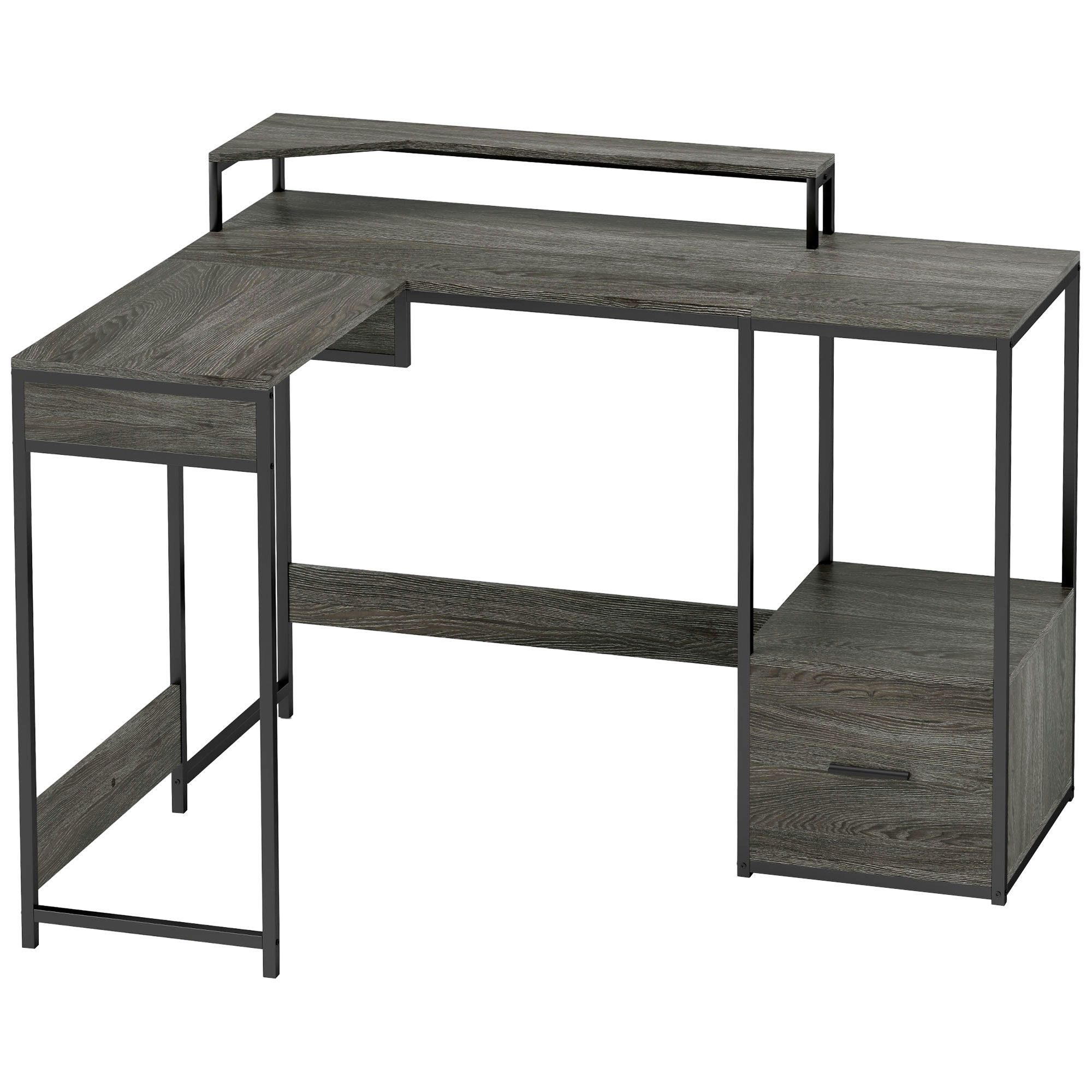 HERON Industrial 'L' Shaped Multi-Work Desk - Charcoal Grey
