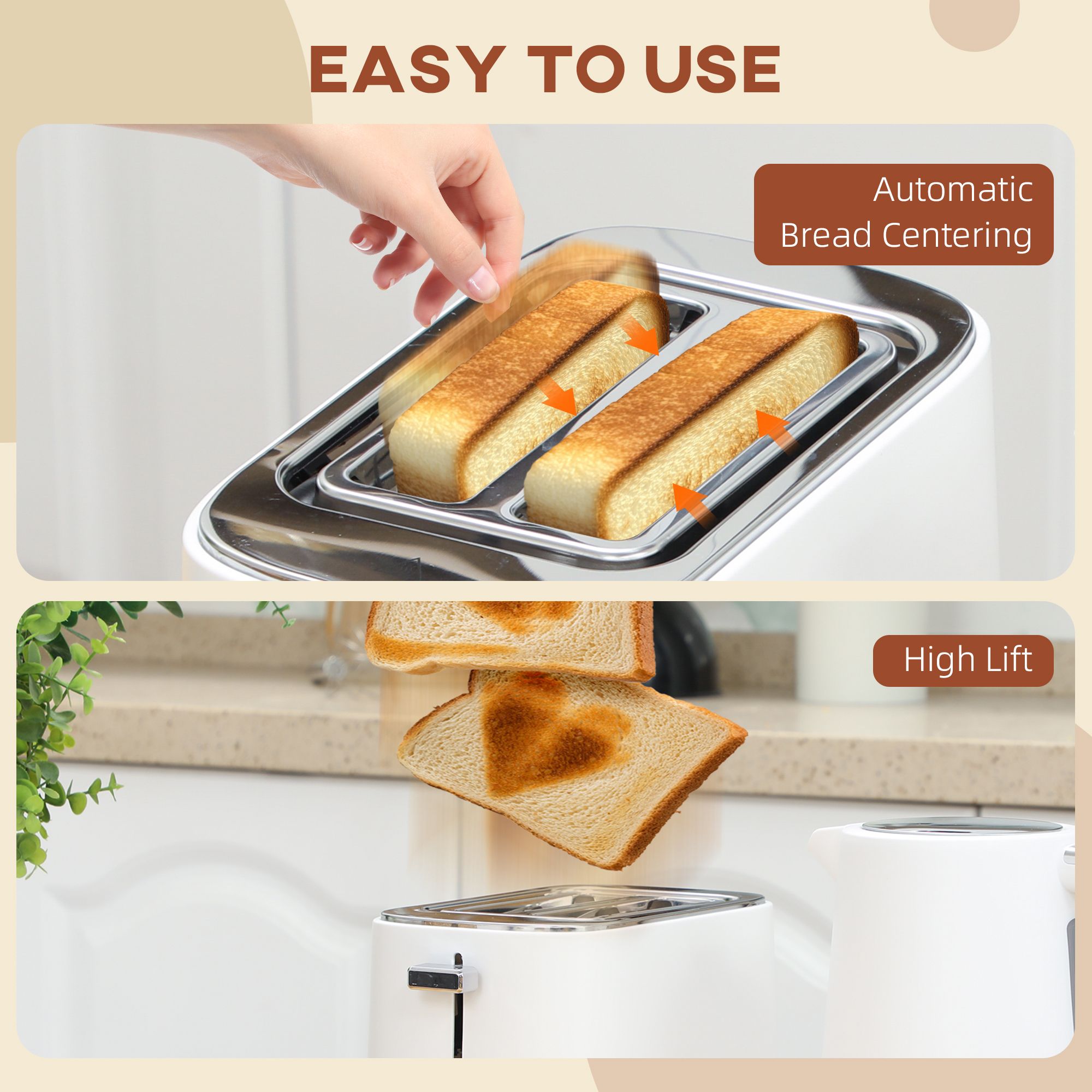HERON Kettle and Toaster Set, 1.7L 3000W Fast Boil Kettle & 2 Slice Toaster Kitchen Set with 6 Level Browning Controls, Defrost, Reheat, White