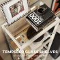 HERON LED Floor Lamp with Glass Shelves 4 Layers Dimmable Standing Lamp - Oak