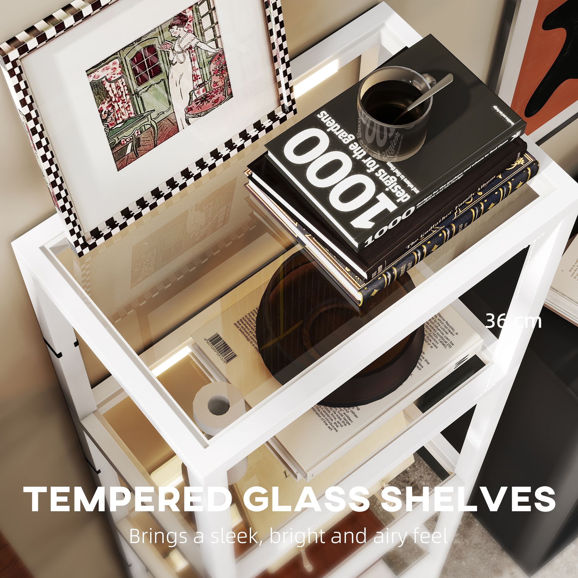 HERON LED Floor Lamp with Glass Shelves 4 Layers Dimmable Standing Lamp - White