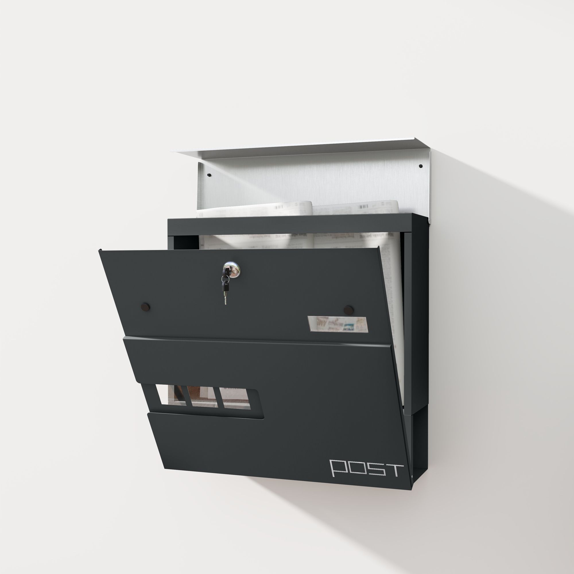 HERON Locking Galvanised Steel Letterbox - Charcoal Grey/Black