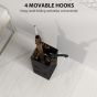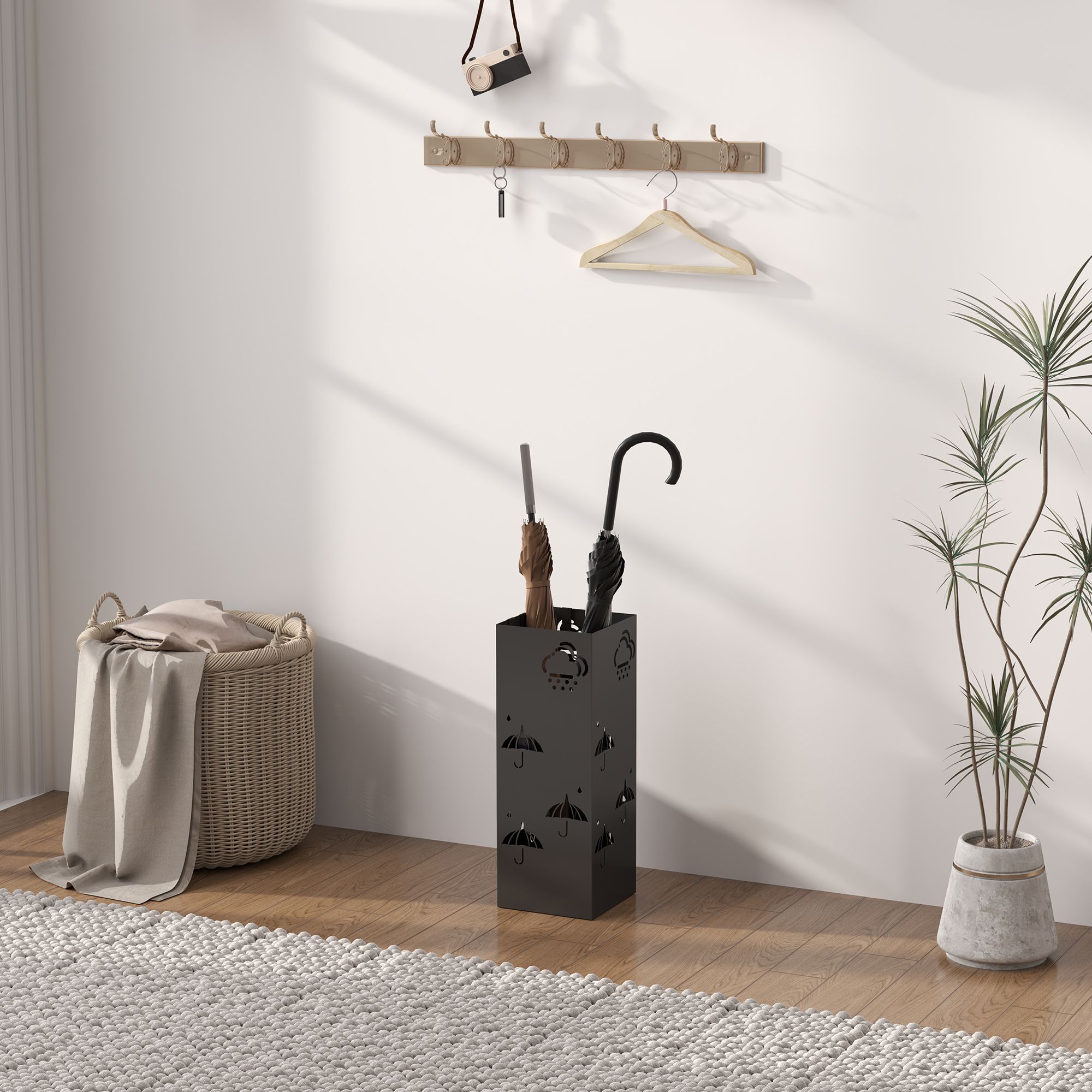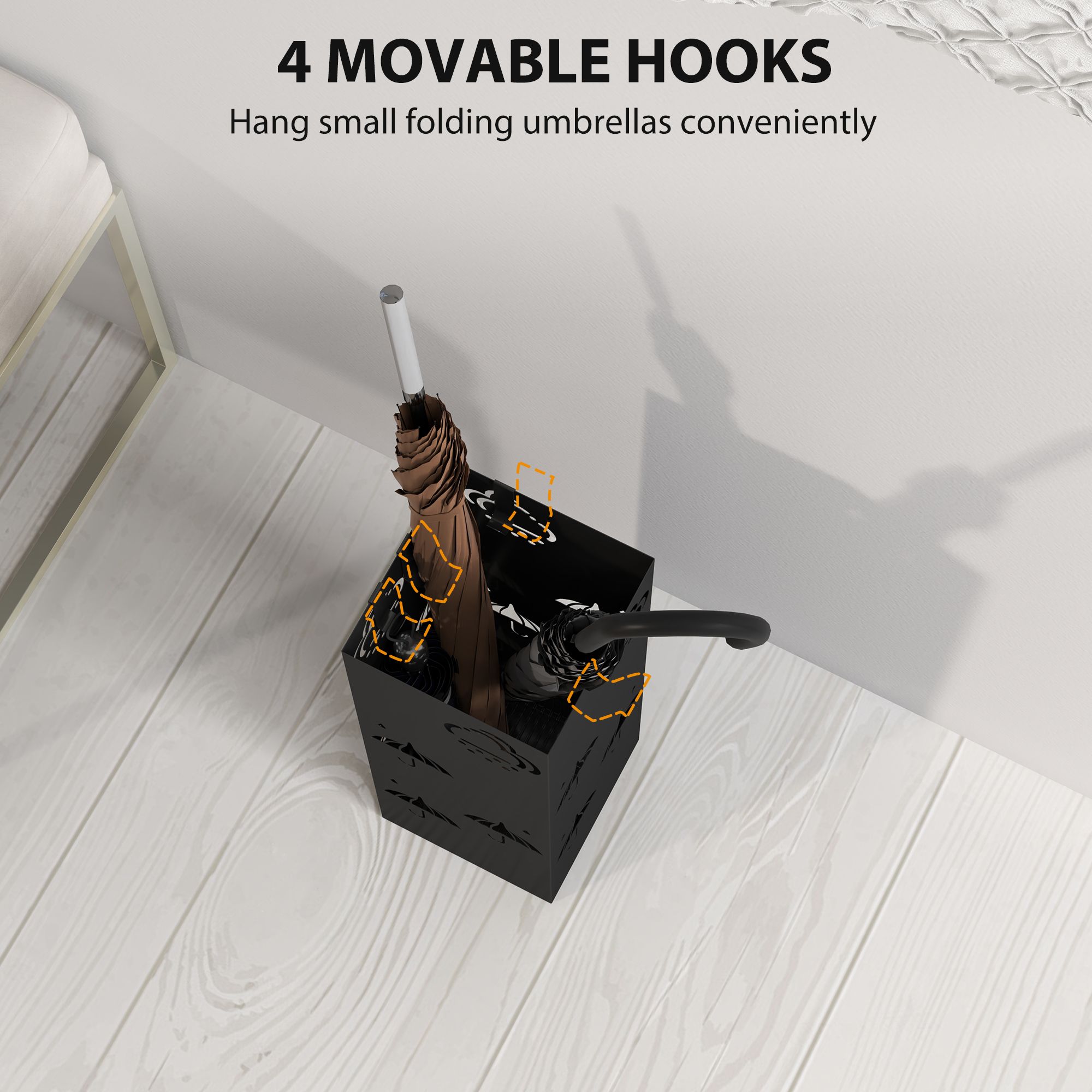 HERON Metal Umbrella Stand, Square Holder with Drip Tray, 4 Hooks, Entryway Storage, Black