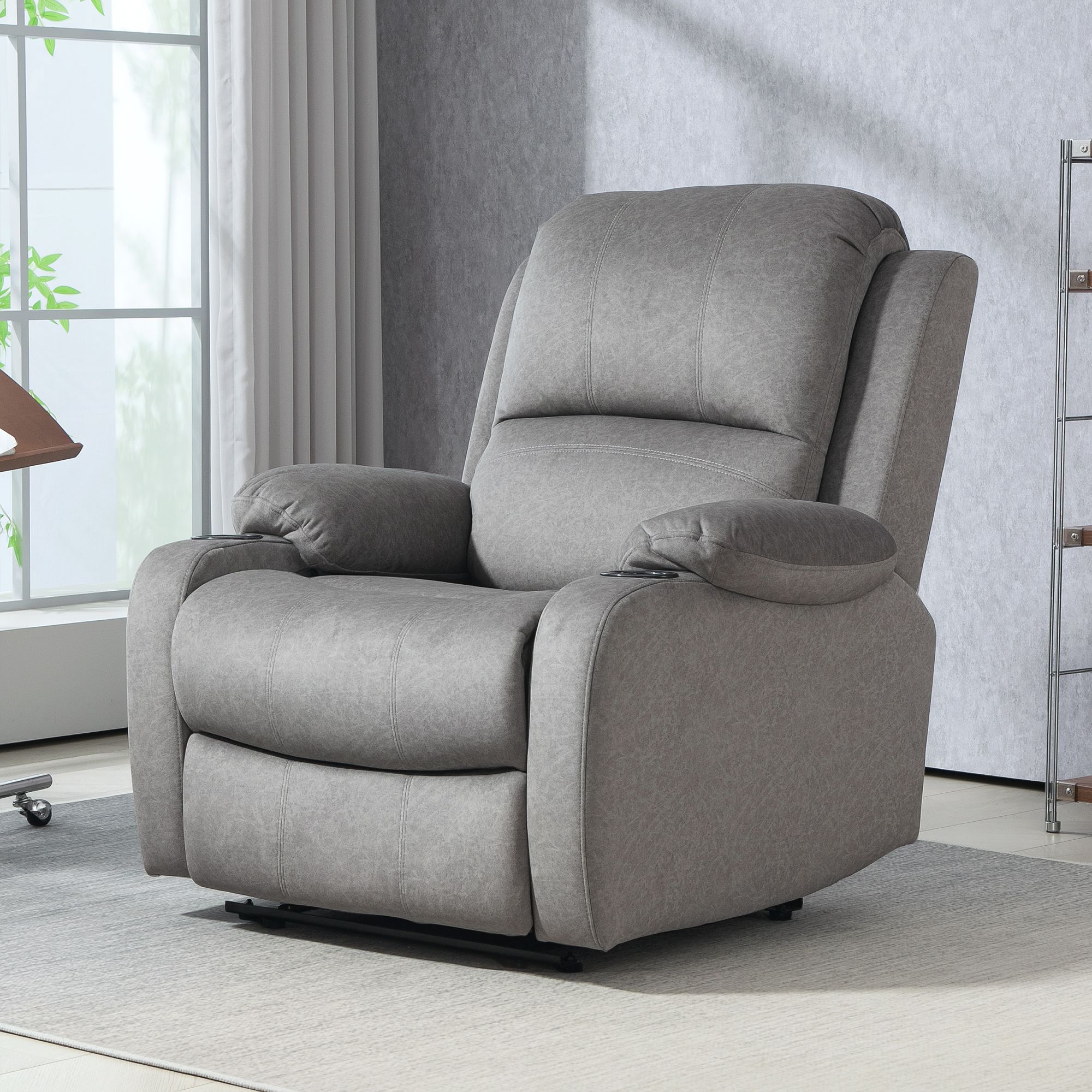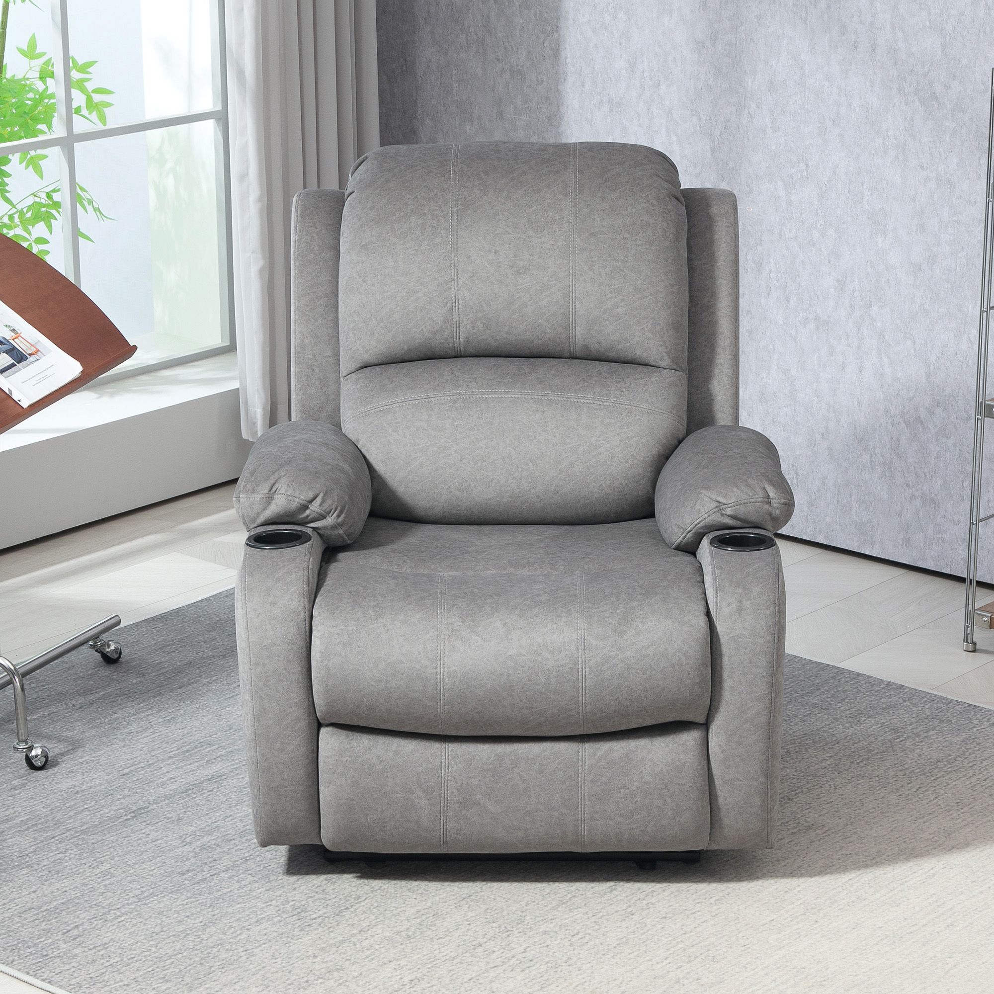 HERON Microfibre Manual Reclining Armchair, with Footrest - Grey