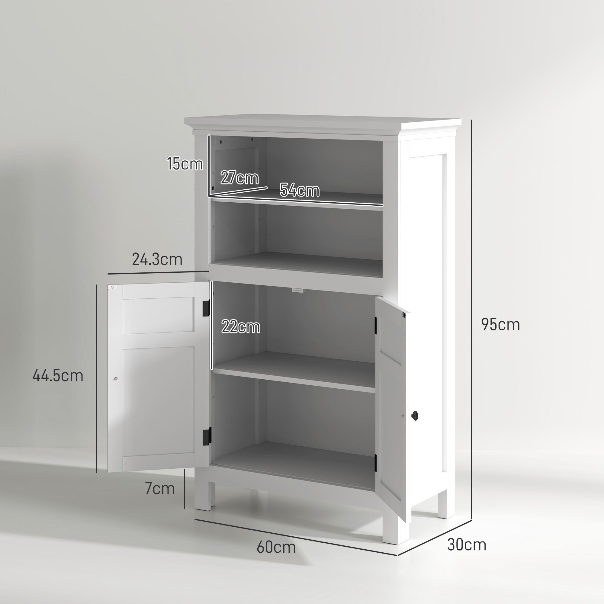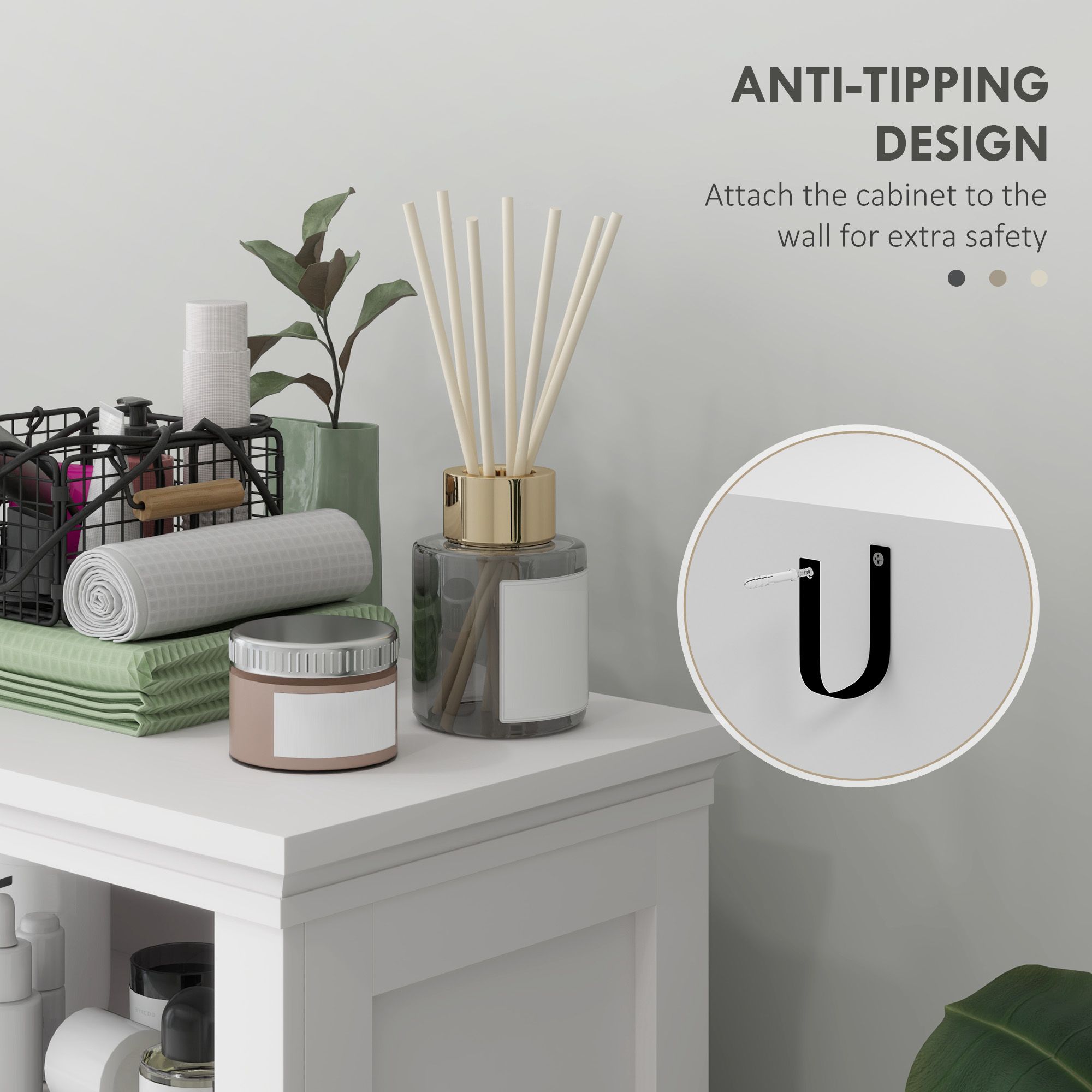 Even small spaces need an extra helping hand, so give yours plenty with this HERON freestanding cabinet. Formed from MDF, this small bathroom storage cabinet is a solid piece suitable for everyday use. Comes with two top shelves and a bottom cupboard - enough room for all the essentials; complete with adjustable shelves for more personalised storage. The anti-tipping straps to attach to the wall for safety.