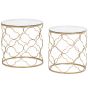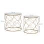 HERON Nesting Tables Set of 2 Modern Stacking Side End Tempered Glass Top - Gold Tone