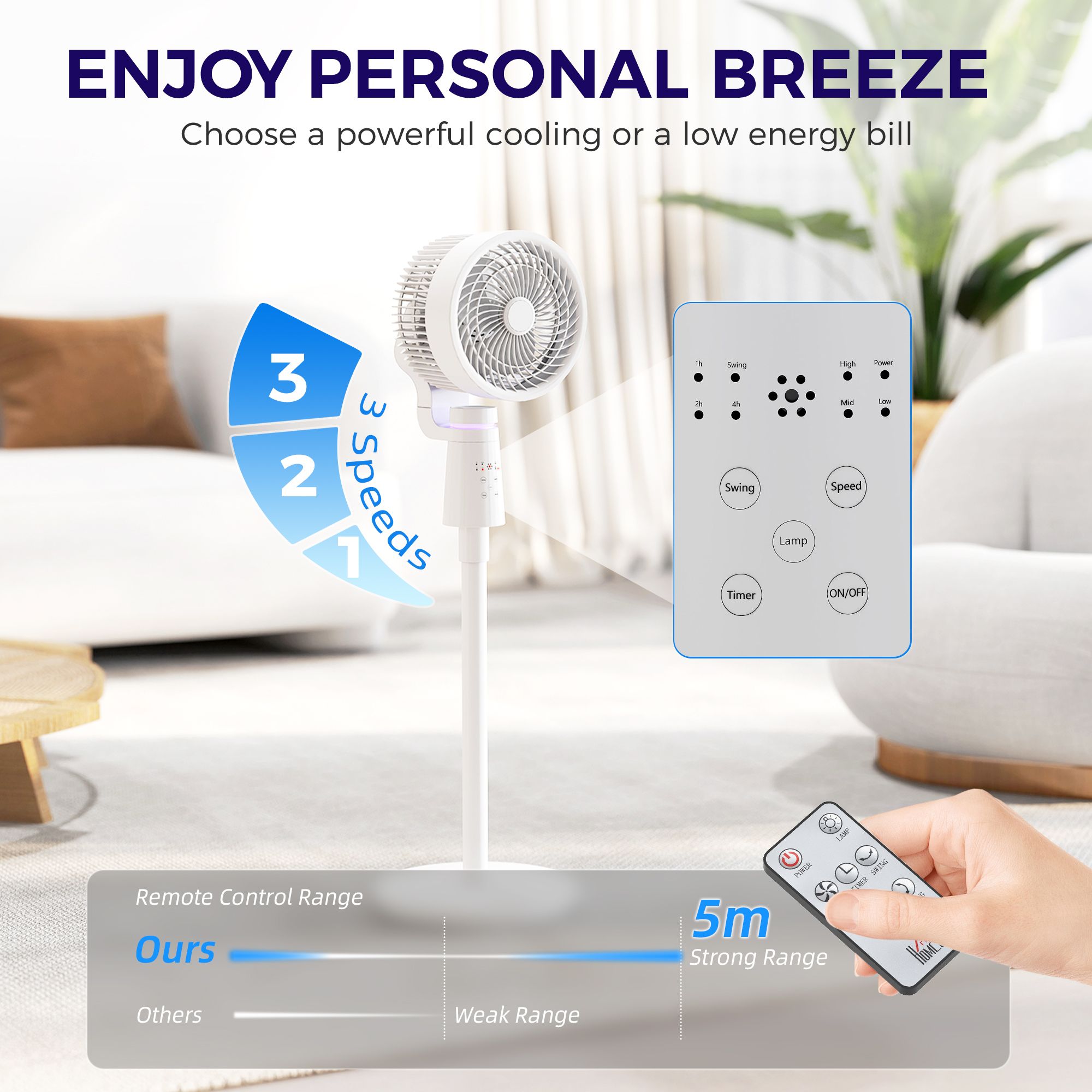 HERON Pedestal Air Circulation Fan with Oscillating, Light Off, White